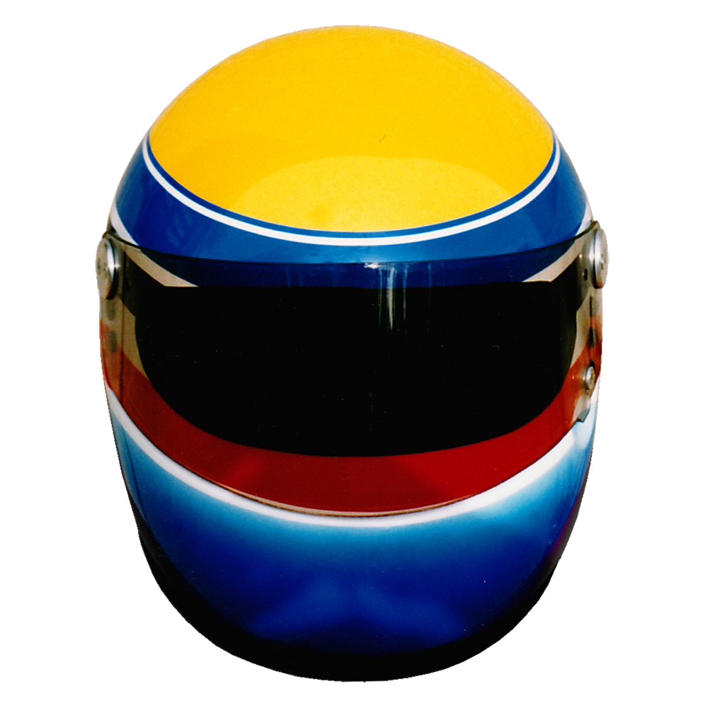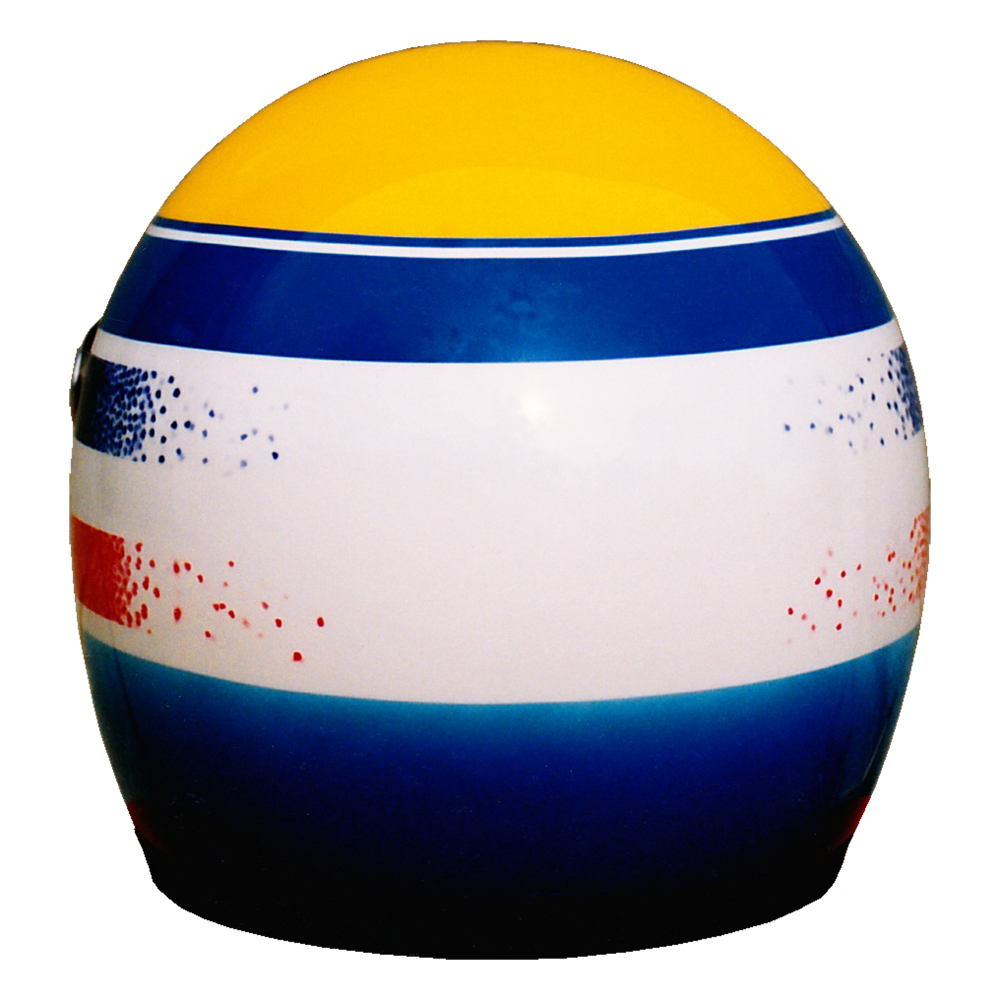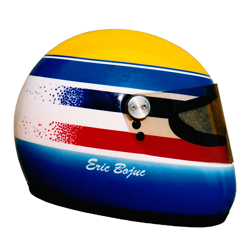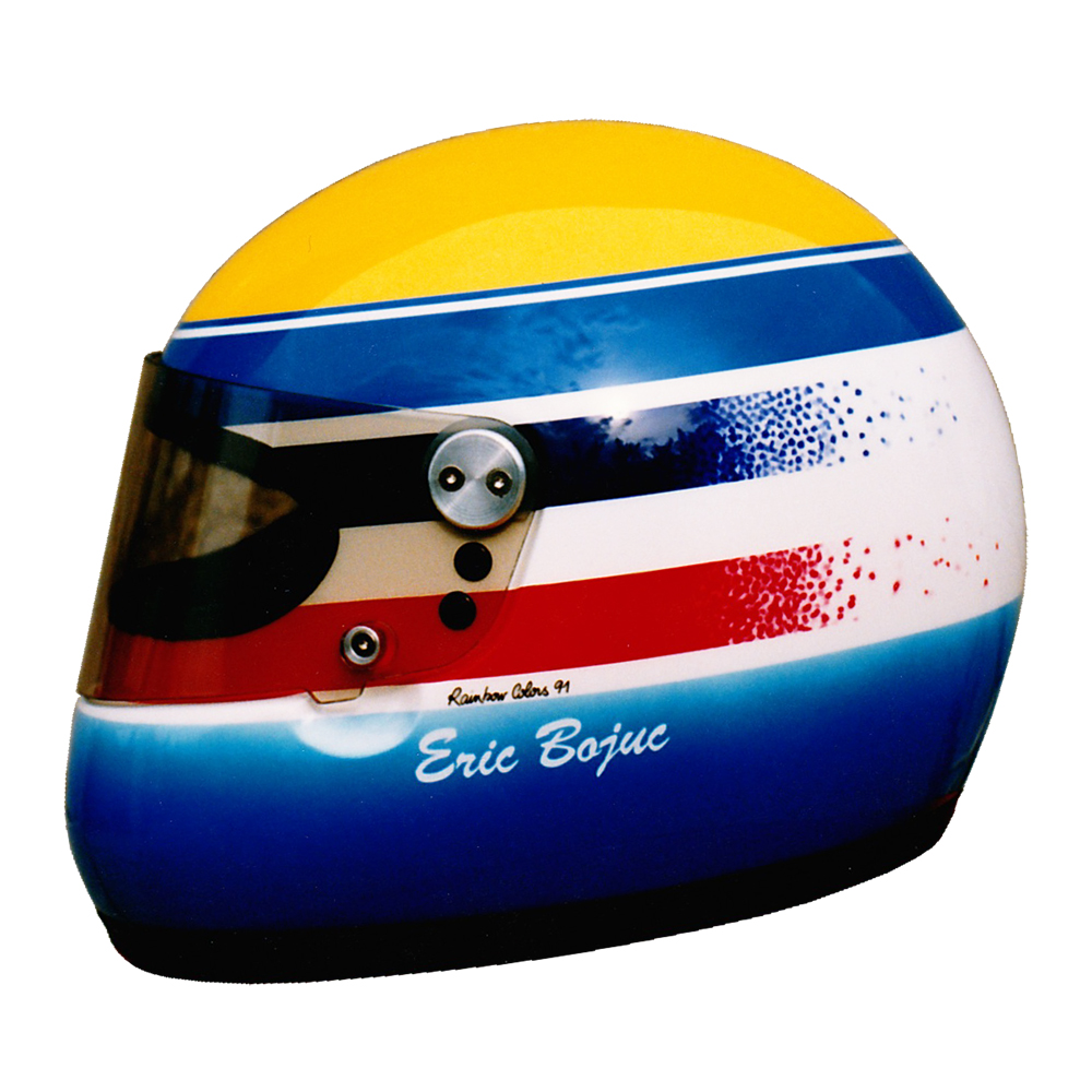 Circuit 1991 Eric BOJUC Casque MDS F1, peint par Christian Roux / Rainbow Colors en 1991 pour Eric Bojuc. Précédent Suivant