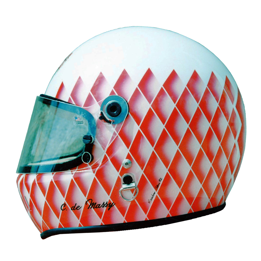 Circuit 1992 Christian Louis de MASSY Casque Bell Sport, crée et peint par Christian Roux / Rainbow Colors en 1992 pour Christian Louis de Massy. Précédent Suivant