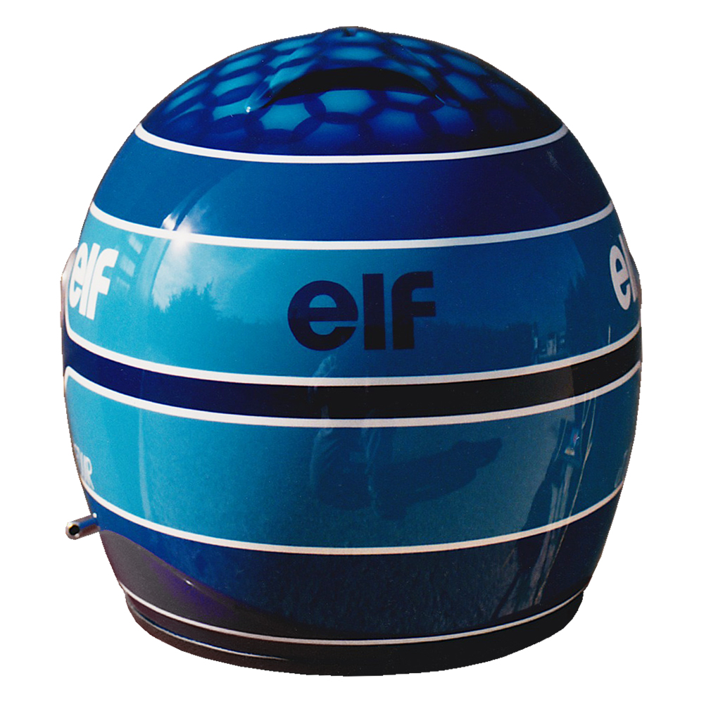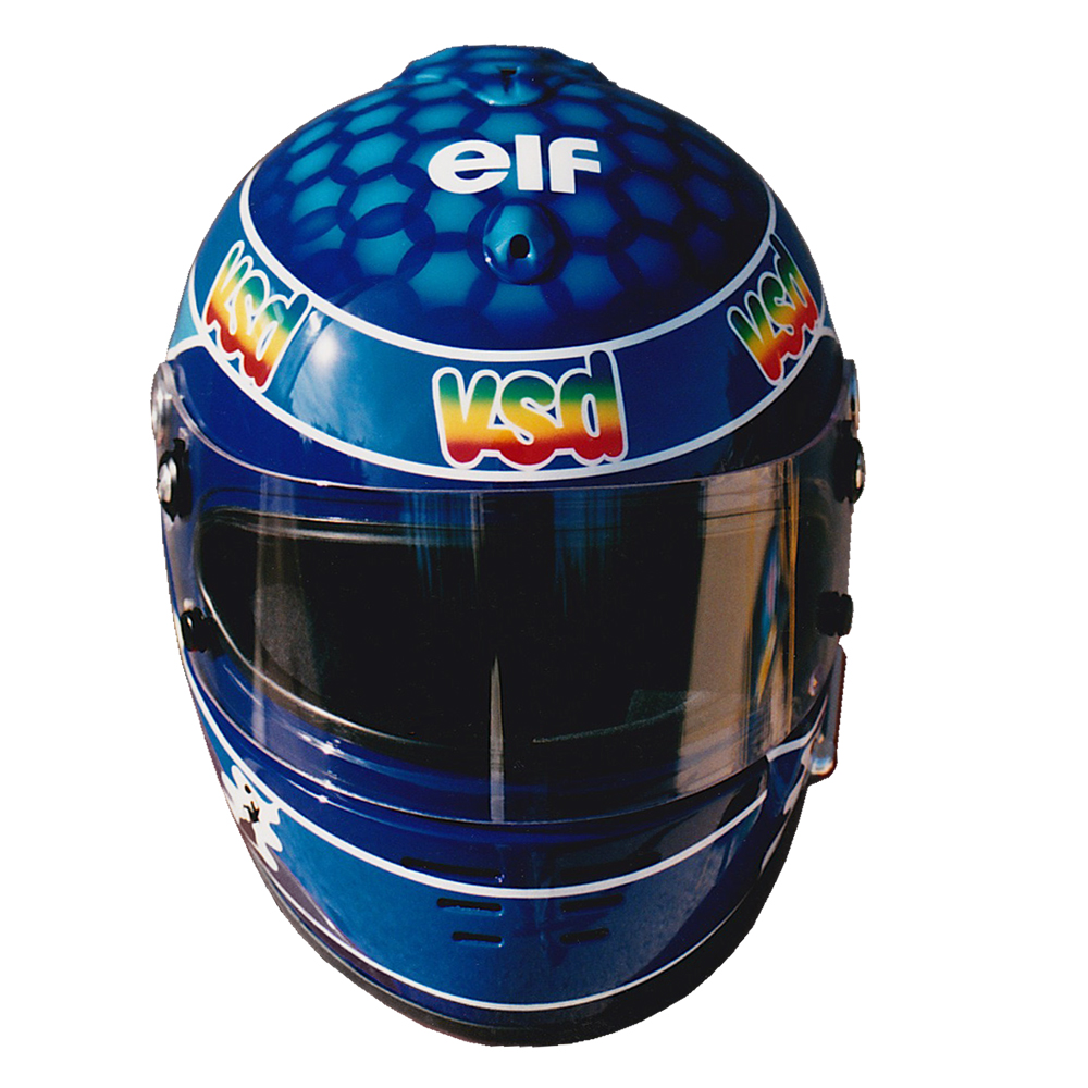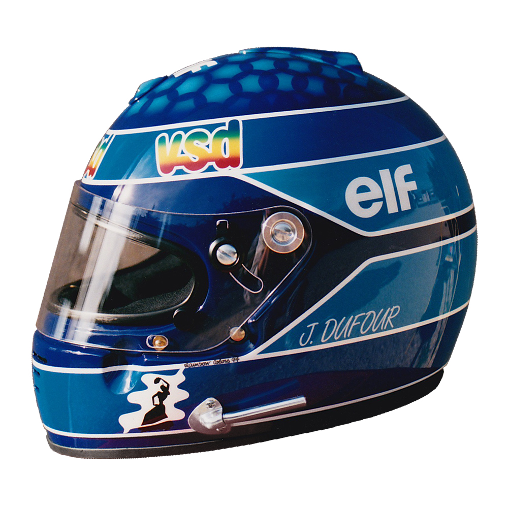 Circuit 1994 Jérémie DUFOUR Casque Arai GP 3, peint par Christian Roux / Rainbow Colors en 1994 pour Jérémie Dufour, Team Fortec Motorsport, 7ème du Championnat de Grande Bretagne de Formule 3. Précédent Suivant