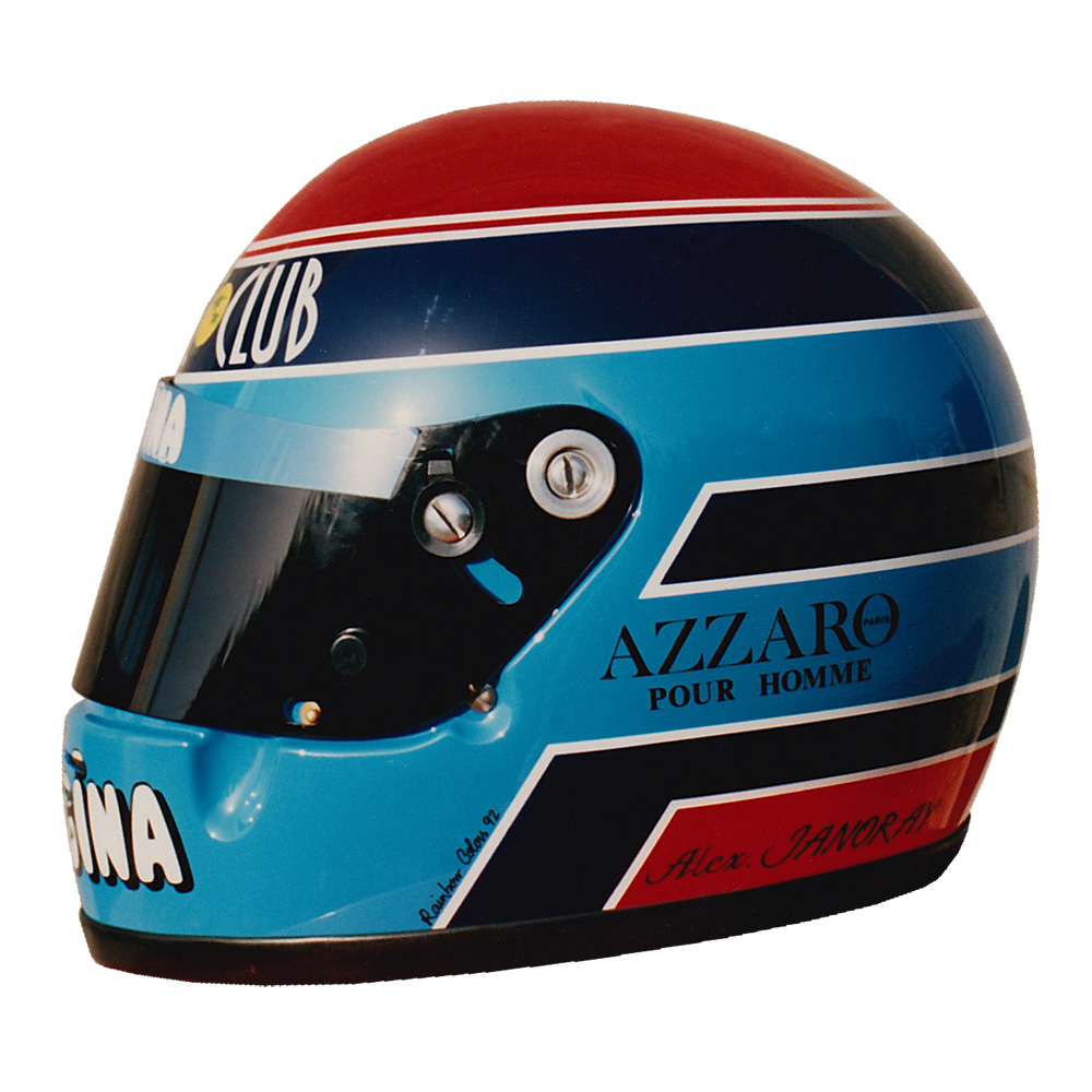 Circuit 1992 Alexandre JANORAY Casque Arai GP 2, peint par Christian Roux / Rainbow Colors en 1992 pour Alexandre Janoray, Team Graff Racing, Champion de France De Formule Ford 1600. Précédent Suivant
