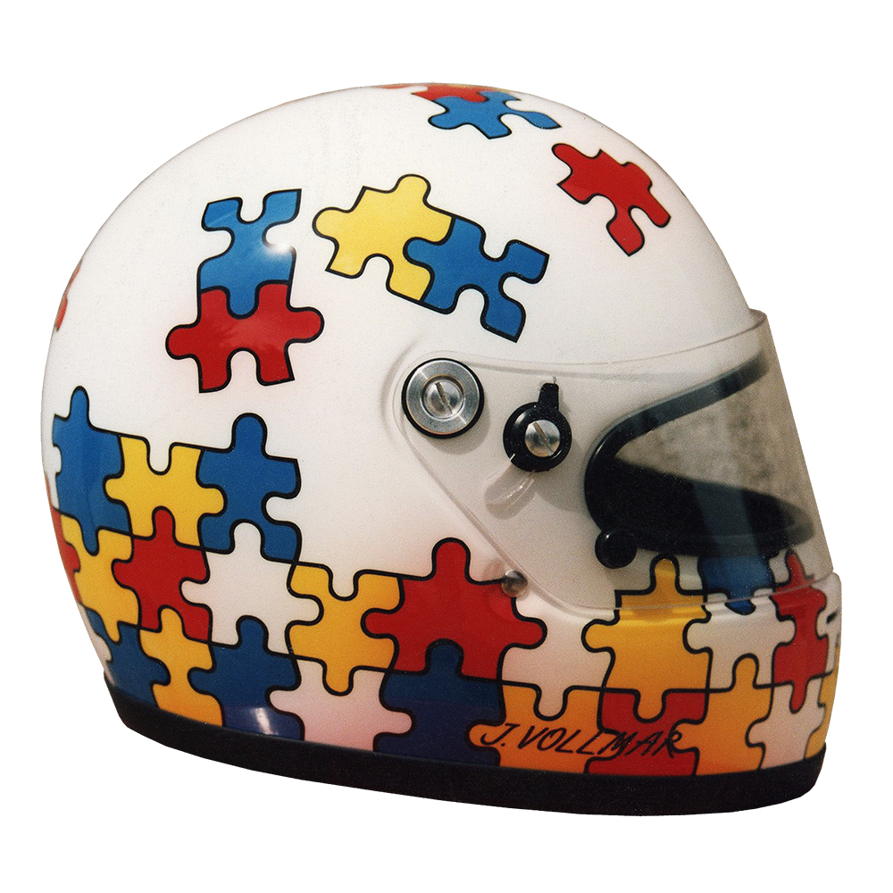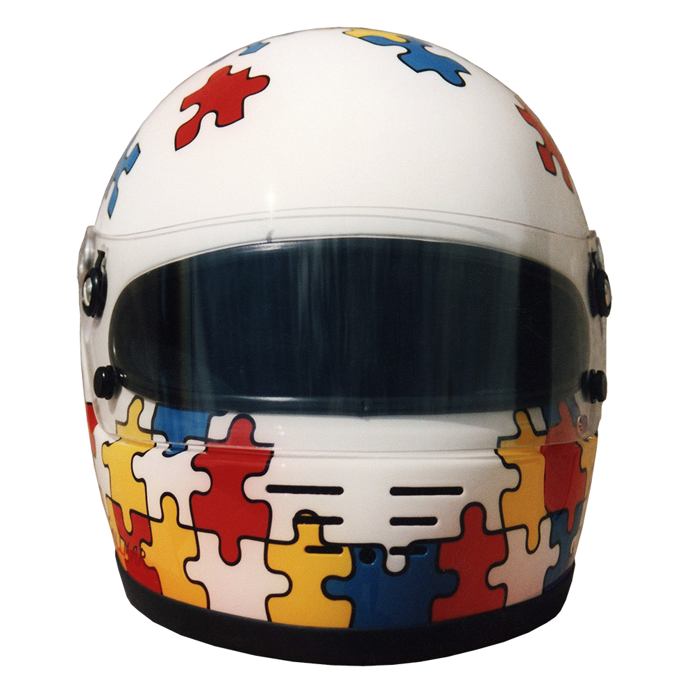 Circuit 1995 James VOLLMAR #2 Casque Arai GP 2, peint par Christian Roux / Rainbow Colors en 1995 pour James Vollmar, Championnat de Fance de Formule Ford 1800. Précédent Suivant