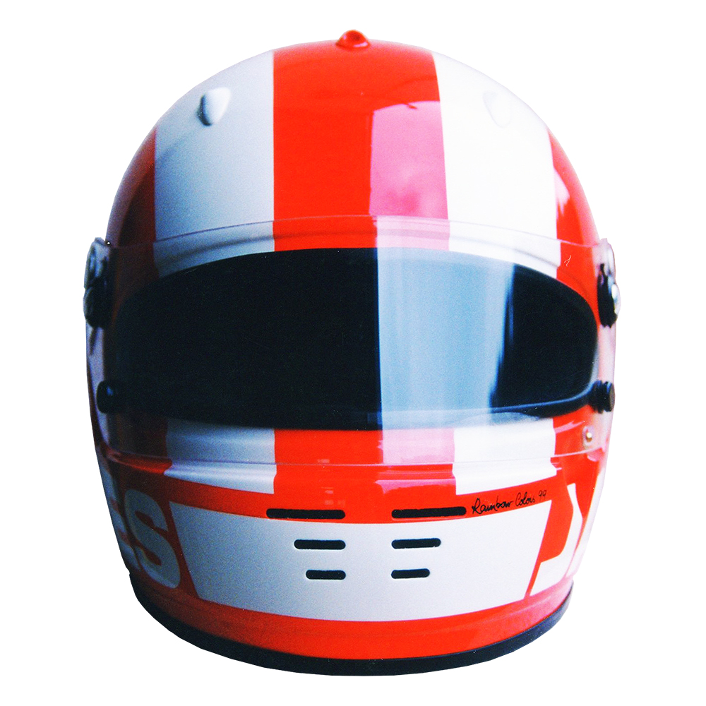 Circuit 1999 James VOLLMAR Casque Arai GP 4, peint par Christian Roux / Rainbow Colors en 1999 pour James Vollmar, Championnat de France de Formule Renault. Précédent Suivant