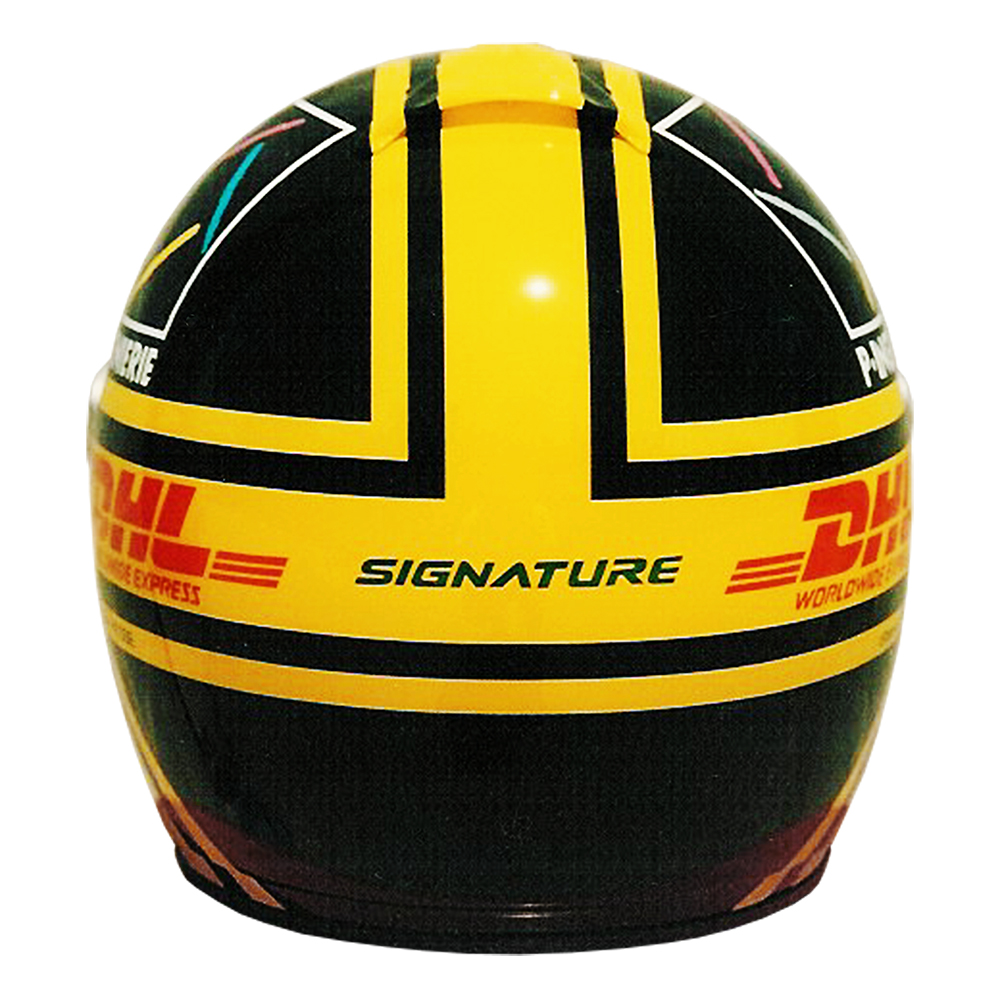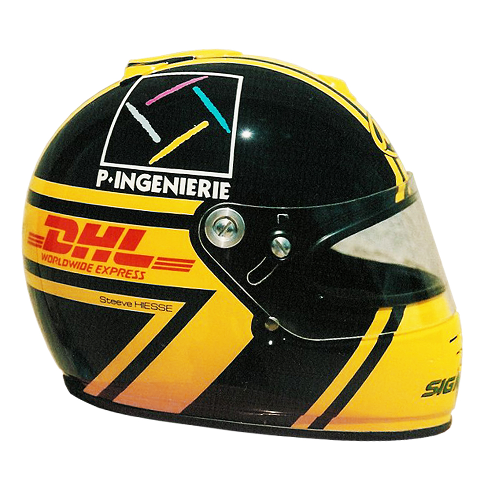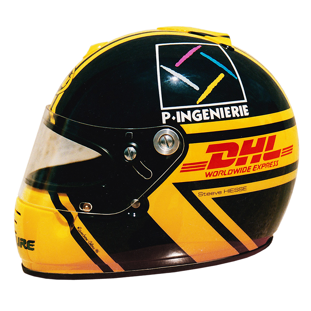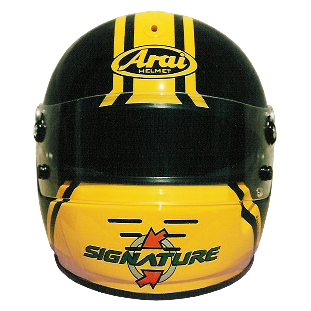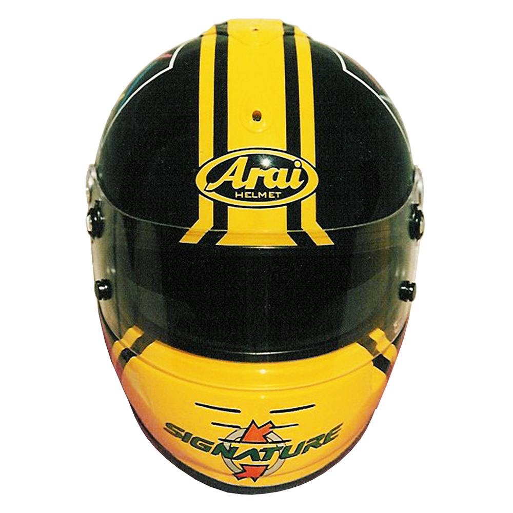 Circuit 1996 Steeve HIESSE Casque Arai GP 3, peint par Christian Roux / Rainbow Colors en 1996 pour Steeve Hiesse, Team Signature Compétition, 4ème du Championnat de France de Formule 3. Précédent Suivant