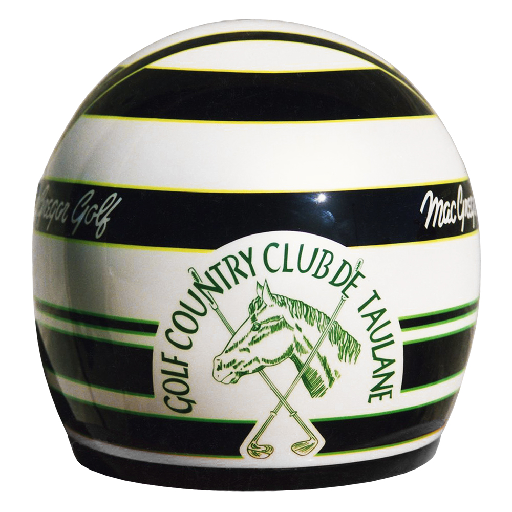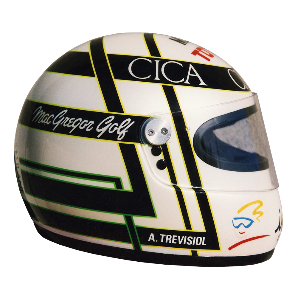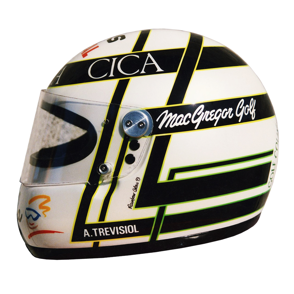 Circuit 1993 Arnaud TREVISIOL #1 Casque MDS F1, peint par Christian Roux / Rainbow Colors en 1993 pour Arnaud Trevisiol, 2ème de la Coupe Peugeot 905 Spider. Précédent Suivant