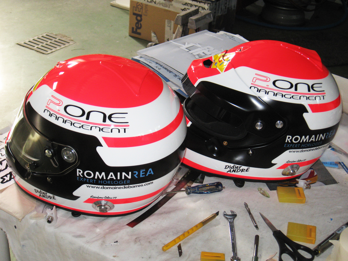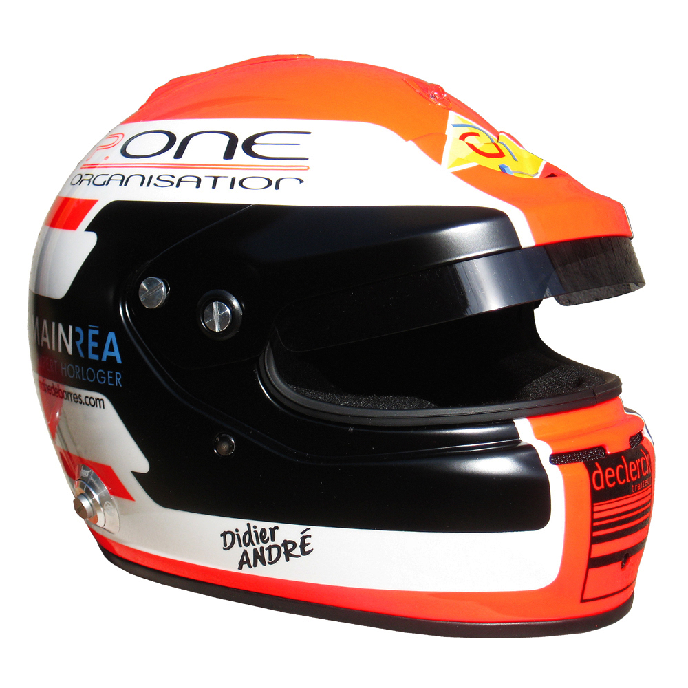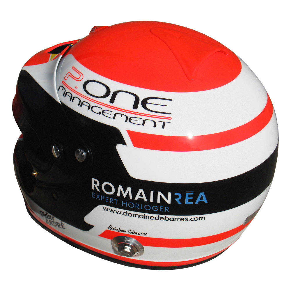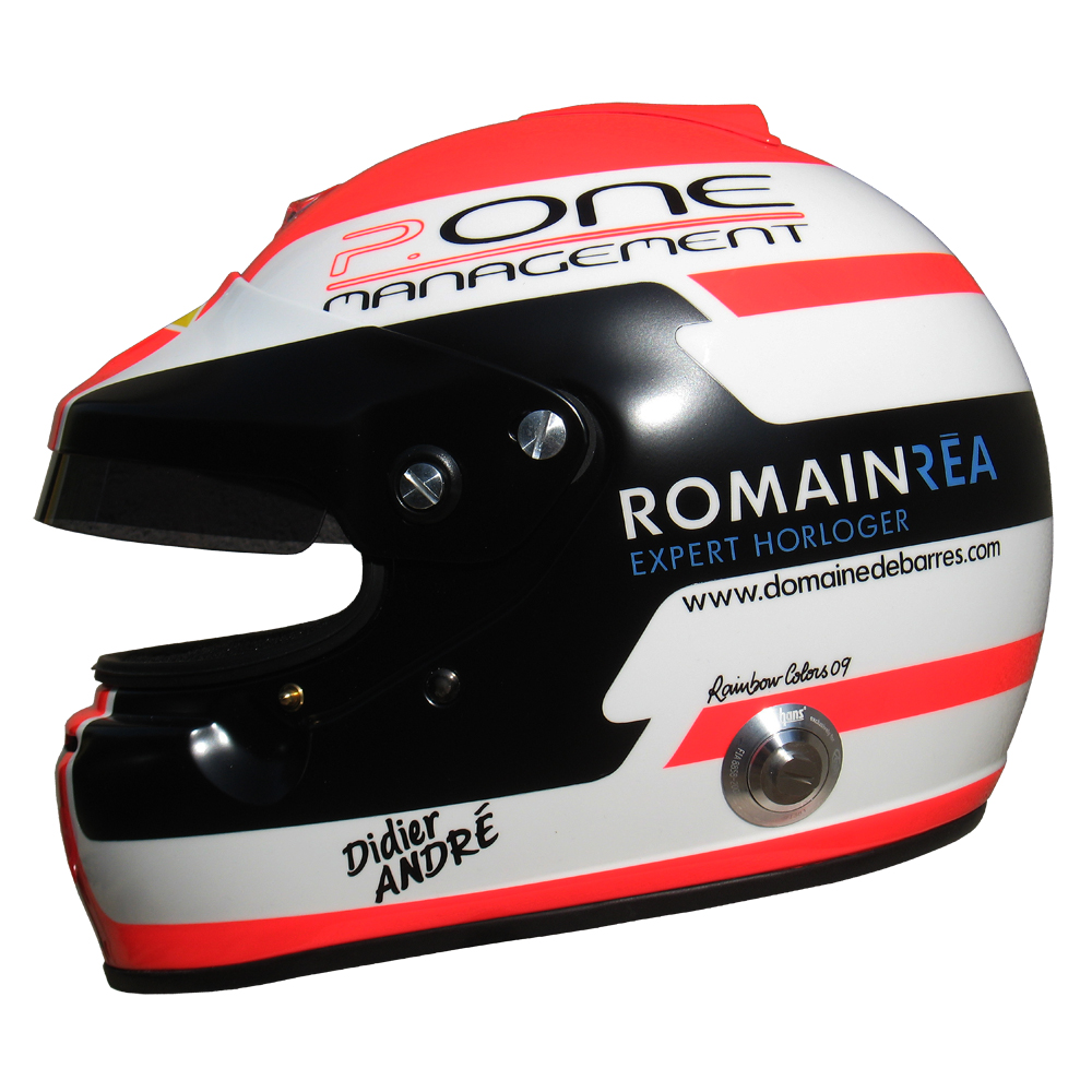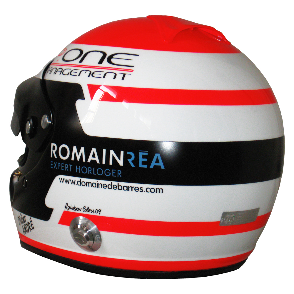 Circuit 2009 Didier ANDRÉ #2 Casque Arai GP 5 W, peint par Christian Roux / Rainbow Colors en 2009 pour Didier André, Team Oreca Aim, 24 Heures du Mans. Précédent Suivant