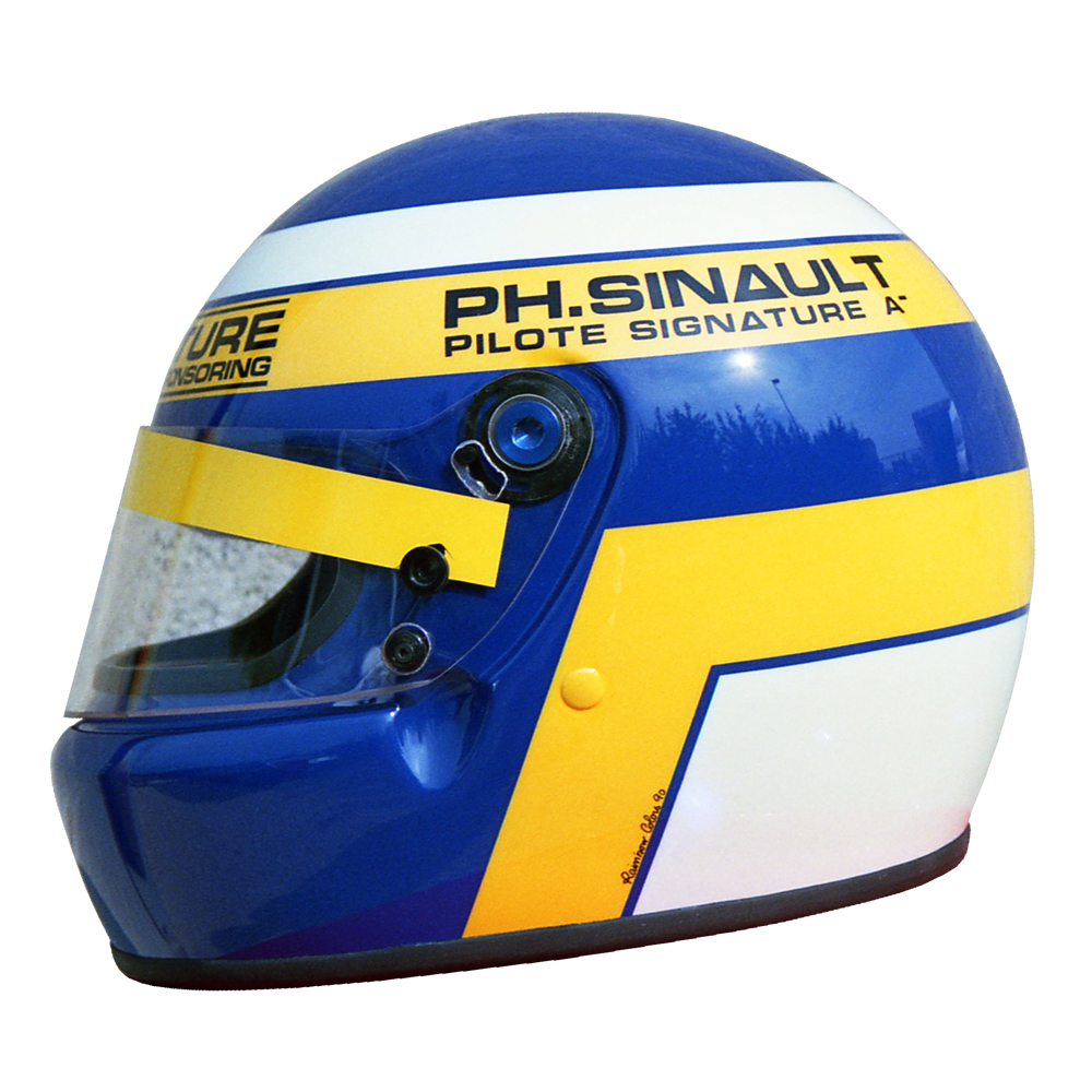 Circuit 1990 Philippe SINAULT Casque Bell XFM-1, peint par Christian Roux / Rainbow Colors en 1990 pour Philippe Sinault, Championnat de France de Formule Renault. Précédent Suivant