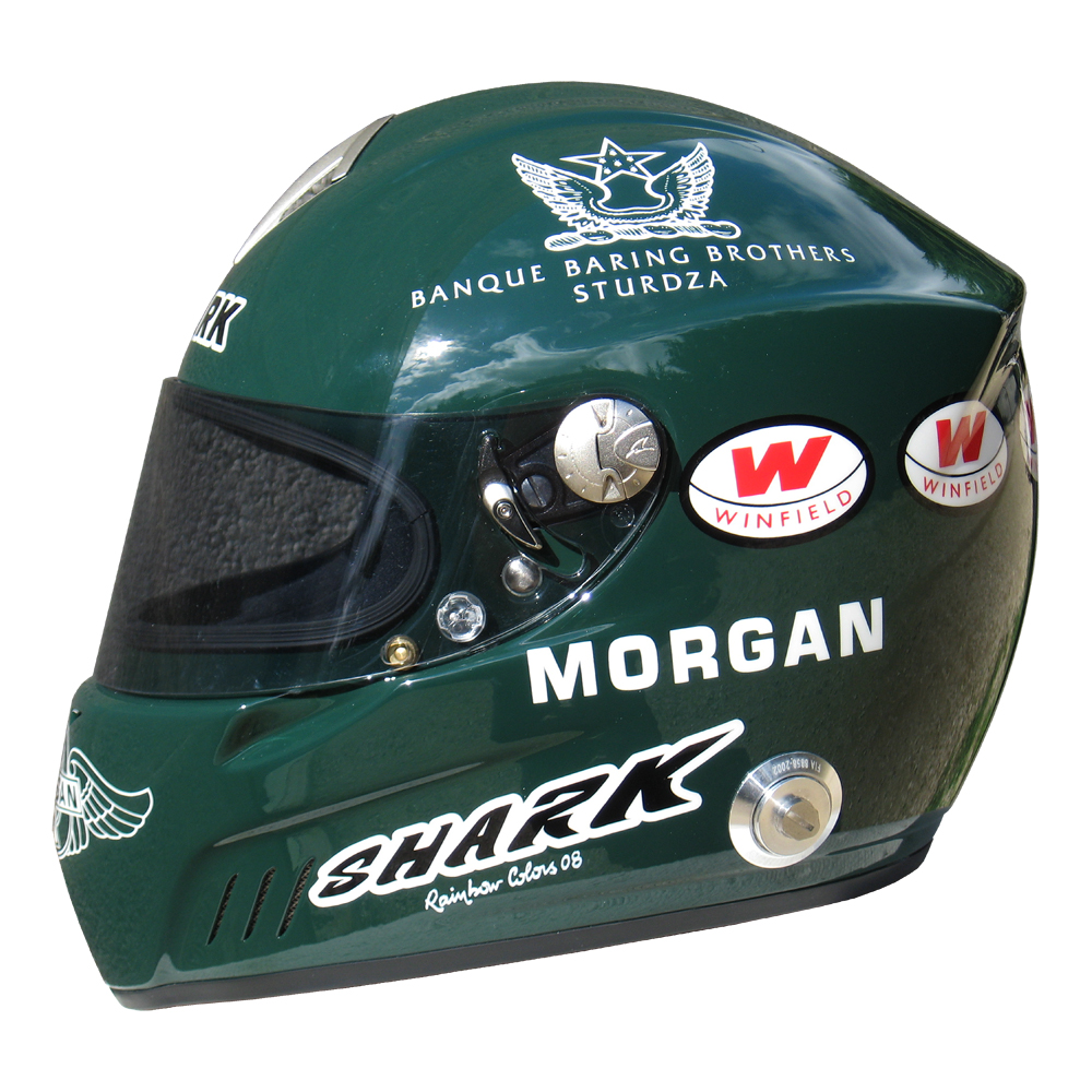 Circuit 2008 Jacques LAFFITE Casque Shark RS 4, peint par Christian Roux / Rainbow Colors en 2008 pour Jacques Laffite, Team Auto GT Racing, Championnat Européen FIA GT3. Précédent Suivant