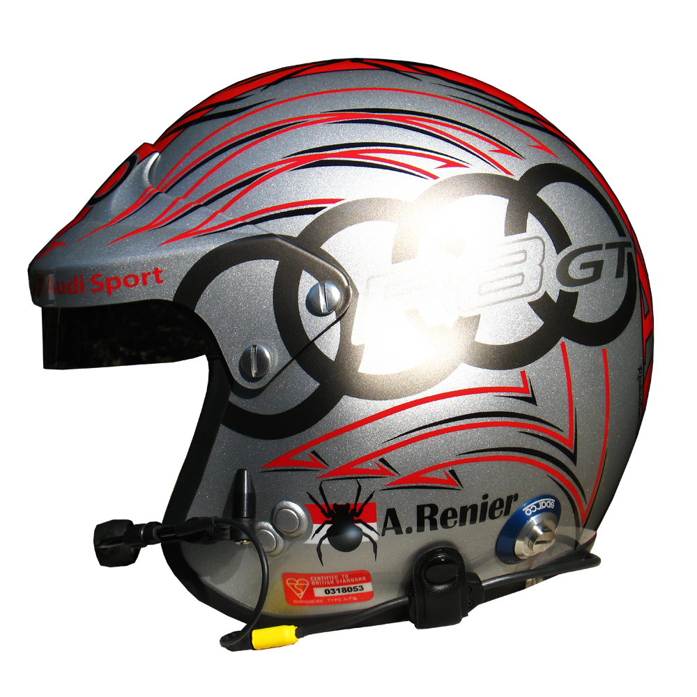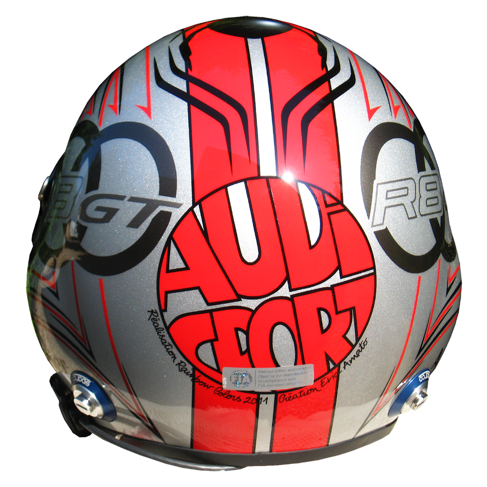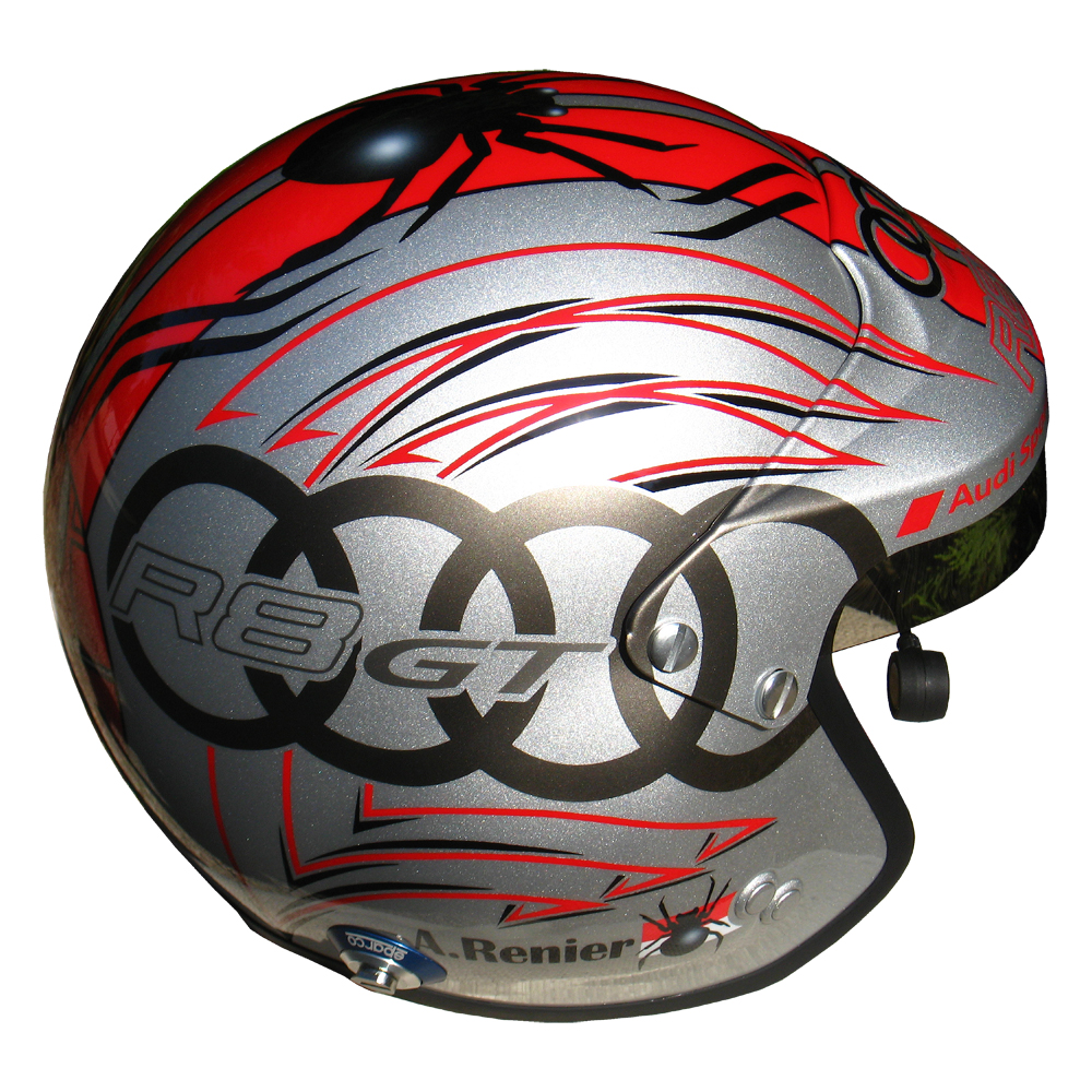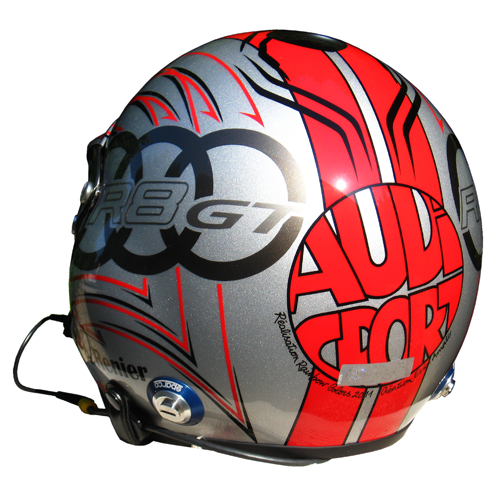 Circuit 2011 Alain RENIER Casque Sparco Jet, peint par Christian Roux / Rainbow Colors en 2011 pour Alain Renier. Précédent Suivant