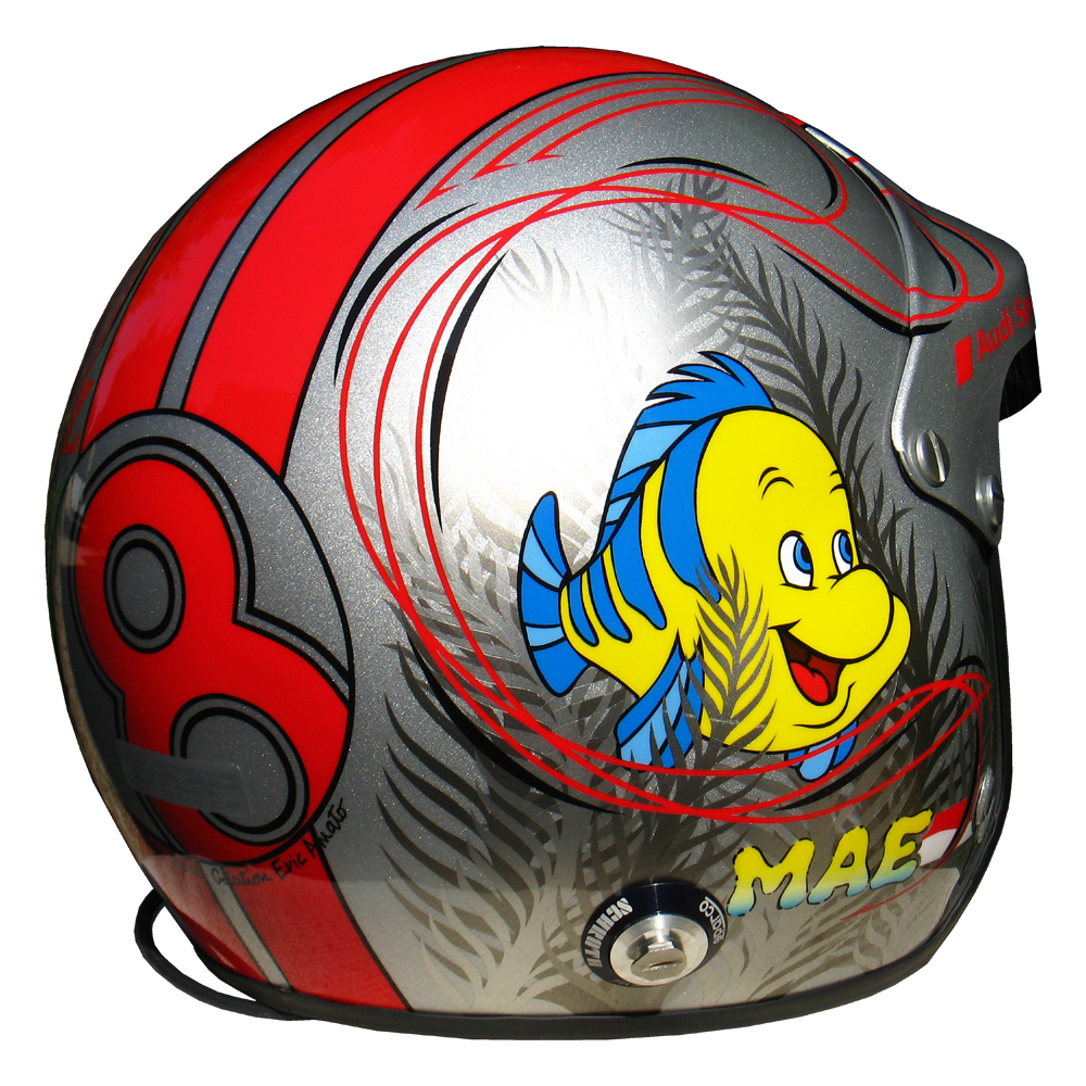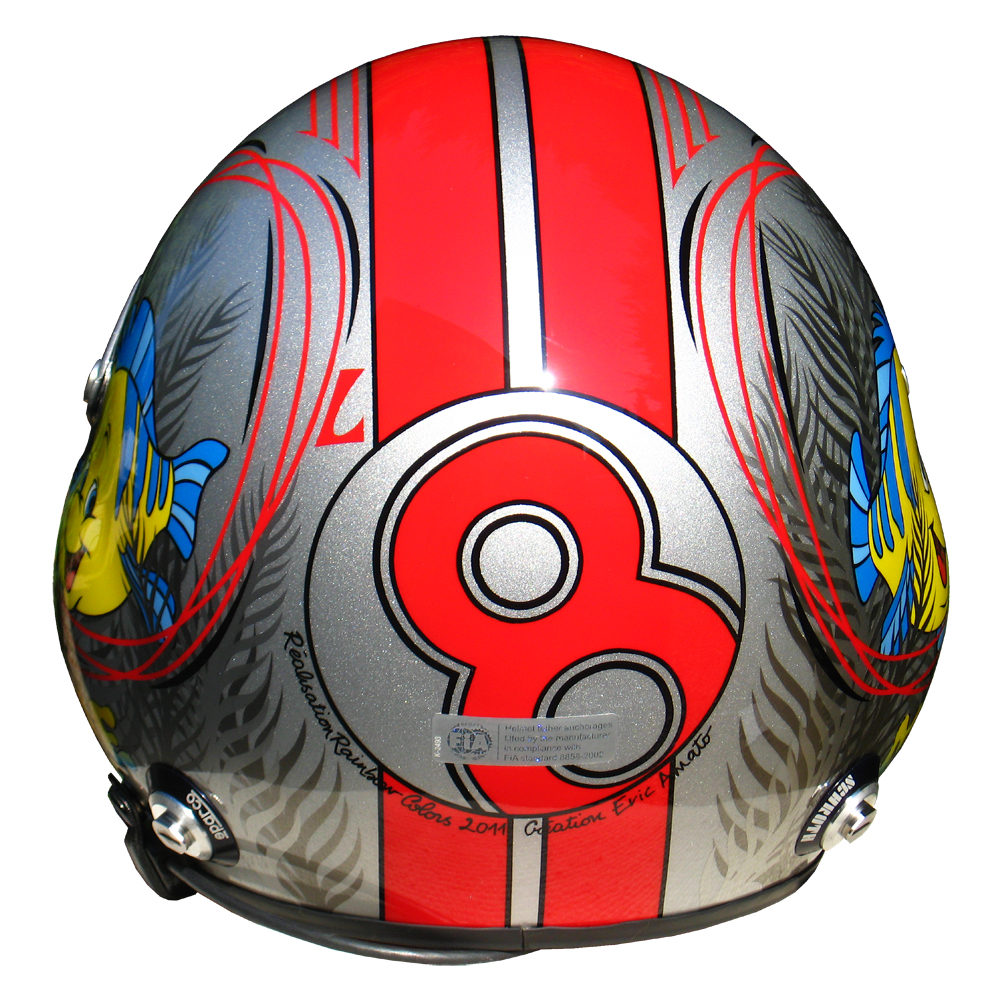 Circuit 2011 Mae RENIER Casque Sparco Jet, peint par Christian Roux / Rainbow Colors en 2011 pour Mae Renier. Précédent Suivant
