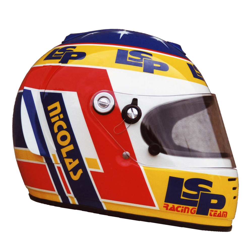 Circuit 2000 Nicolas LAPIERRE #2 Casque Arai GP 3 S, peint par Christian Roux / Rainbow Colors en 2000 pour Nicolas Lapierre, Team LSP Racing, Championnat de France et d'Europe de Formule Renault 2.0. Précédent Suivant
