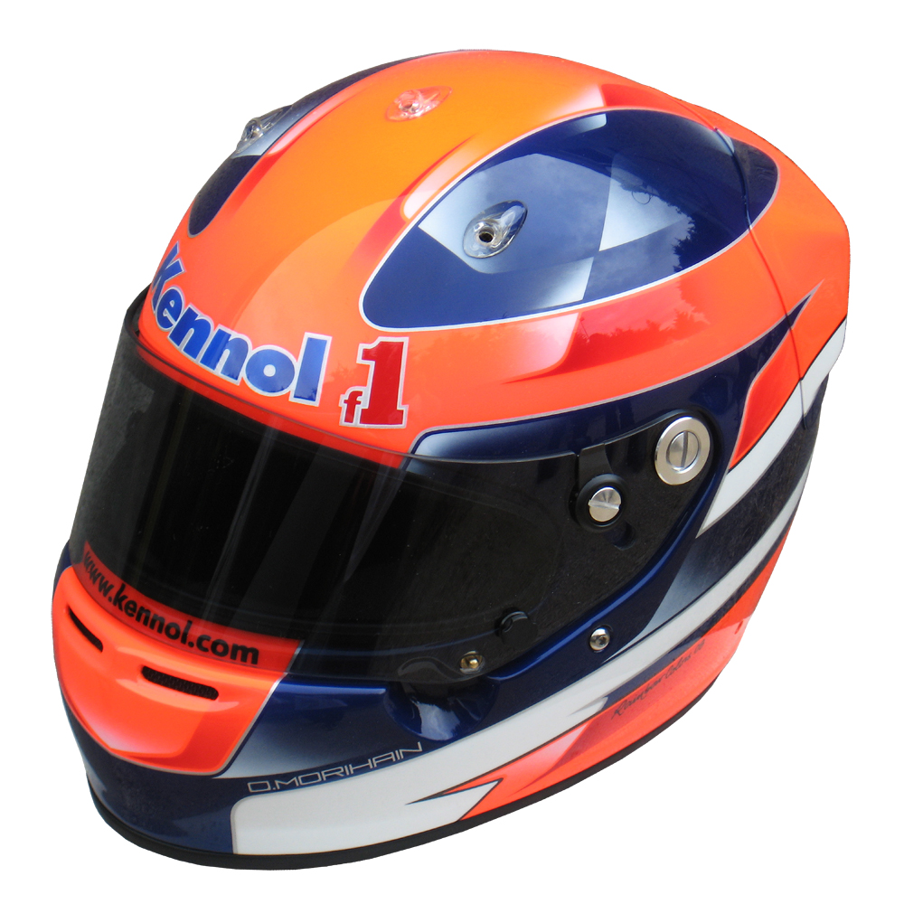 Circuit 2008 Olivier MORIHAIN Casque Arai GP 5, crée et peint par Christian Roux / Rainbow Colors en 2008 pour Olivier Morihain, Kennol F1. Précédent Suivant