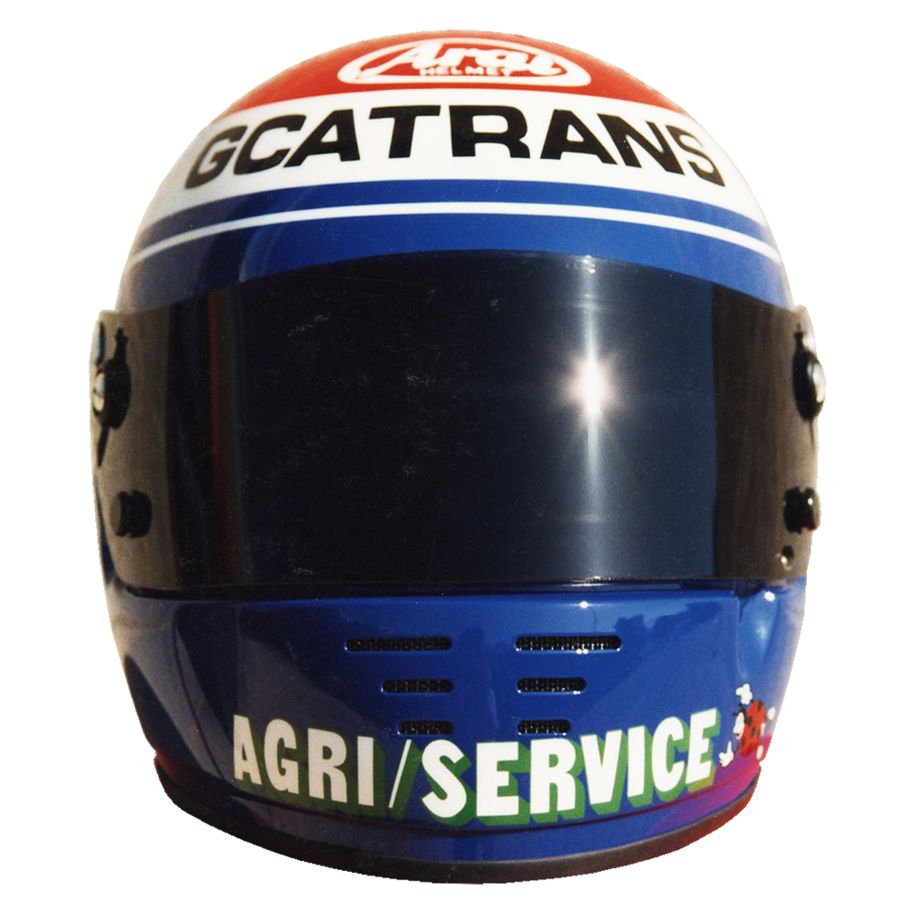 Circuit 1993 Didier ANDRÉ Casque Arai GP 3, peint par Christian Roux / Rainbow Colors en 1993 pour Didier André, 5ème Formule Renault Campus France. Précédent Suivant
