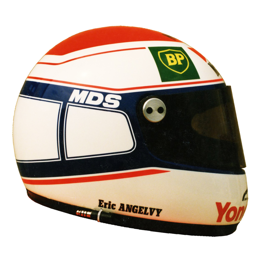 Circuit 1991 Eric ANGELVY #1 Casque MDS F1, peint par Christian Roux / Rainbow Colors en 1991 pour Eric Angelvy, Team Formula Project, Championnat de France de Formule 3. Précédent Suivant
