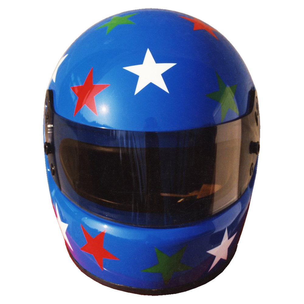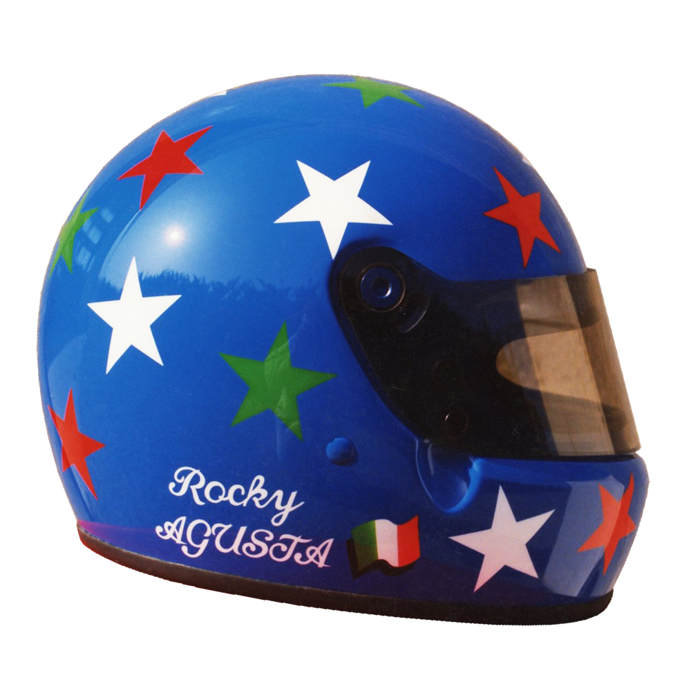 Circuit 1992 Rocky AGUSTA #1 Casque Bell XFM-1, peint par Christian Roux / Rainbow Colors en 1992 pour le comte Riccardo “Rocky“ Agusta, Team Agusta Racing, 24 Heures du Mans GT 1993. Précédent Suivant