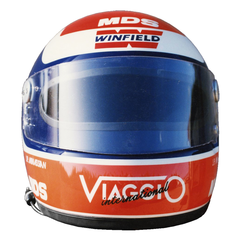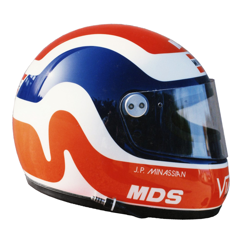 Circuit 1992 Jean Paul MINASSIAN Casque MDS F1, crée et peint par Christian Roux / Rainbow Colors en 1992 pour Jean Paul Minassian, Championnat de France de Formule Renault. Précédent Suivant