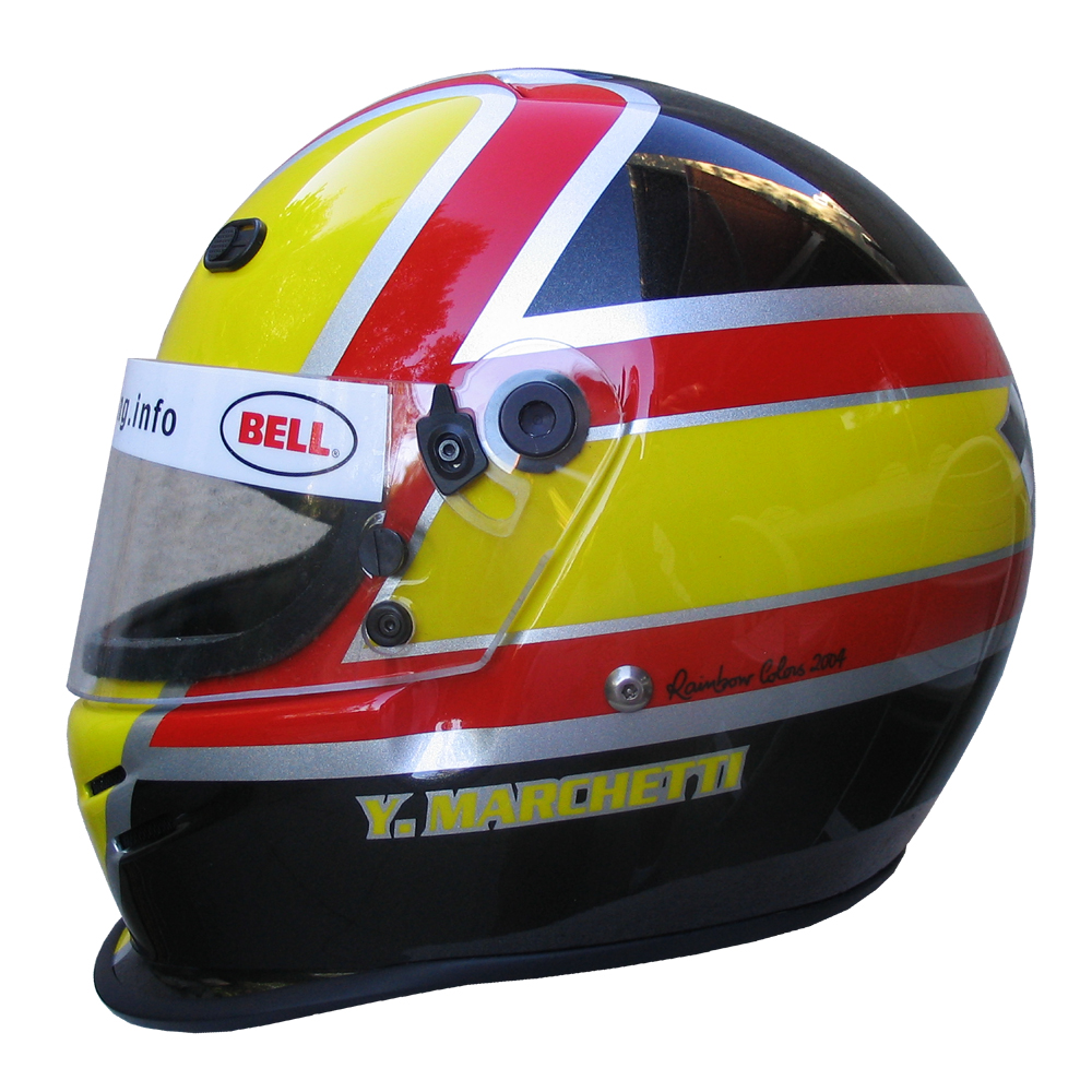 Circuit 2004 Yves MARCHETTI Casque Bell K1 Sport, peint par Christian Roux / Rainbow Colors en 2004 pour Yves Marchetti. Précédent Suivant