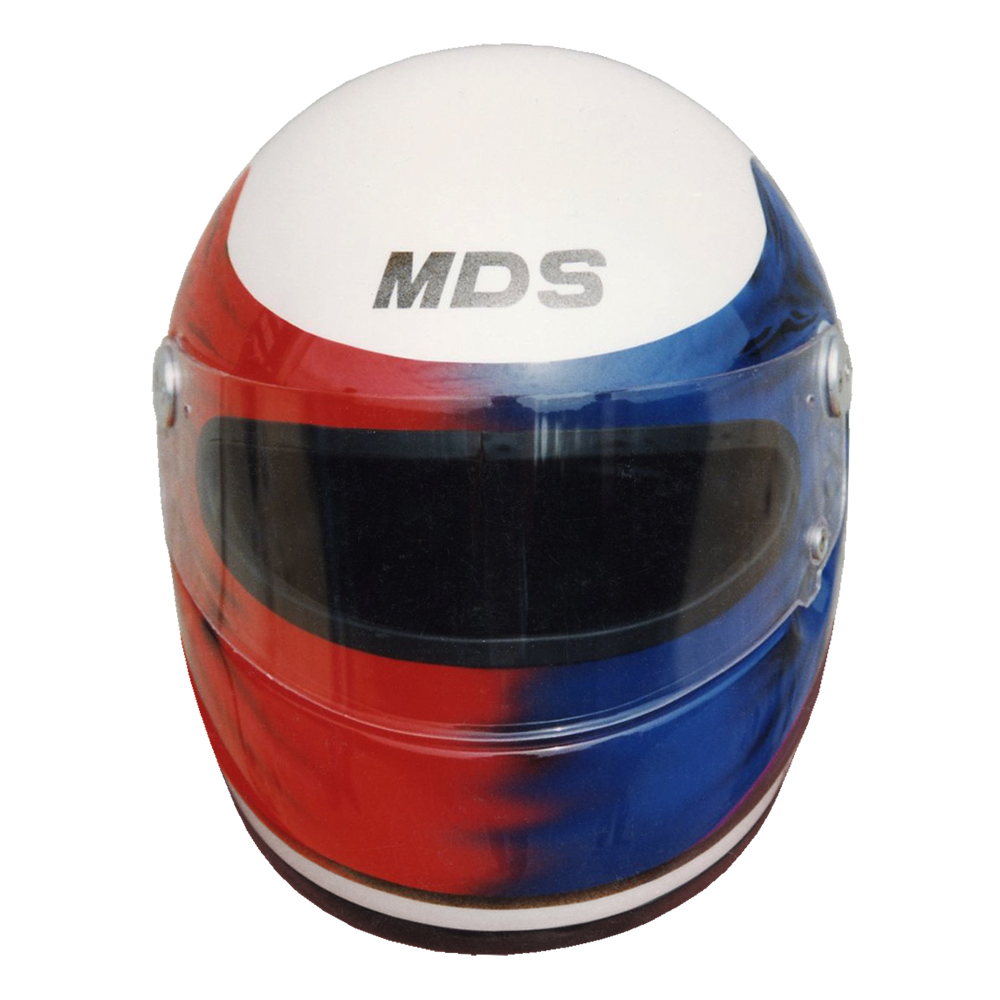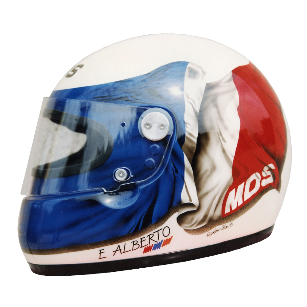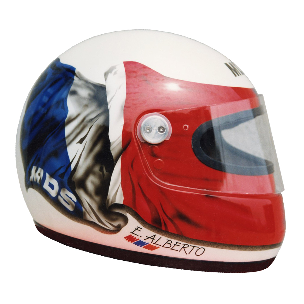 Circuit 1993 Eric ALBERTO #1 Casque MDS F1, crée et peint par Christian Roux / Rainbow Colors en 1993 pour Eric Alberto, Team LD Autosport, Championnat de France de Formule 3. Précédent Suivant