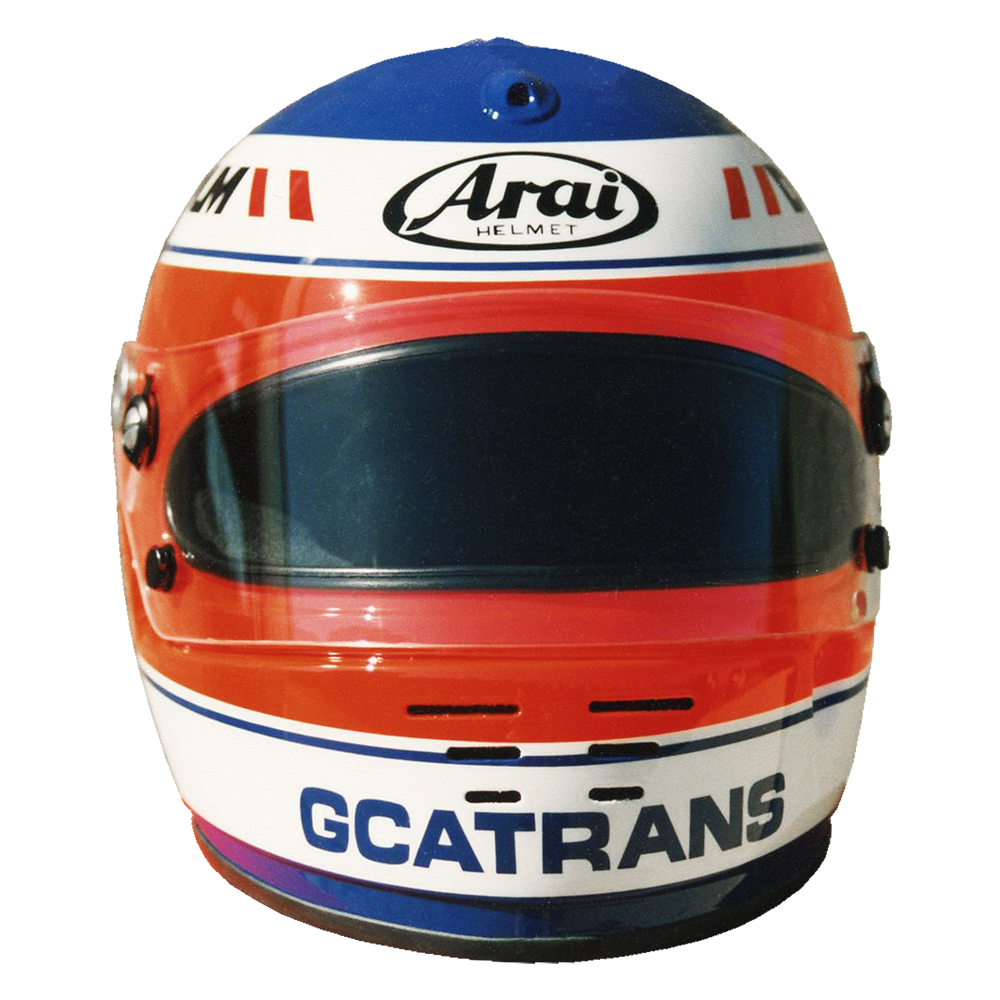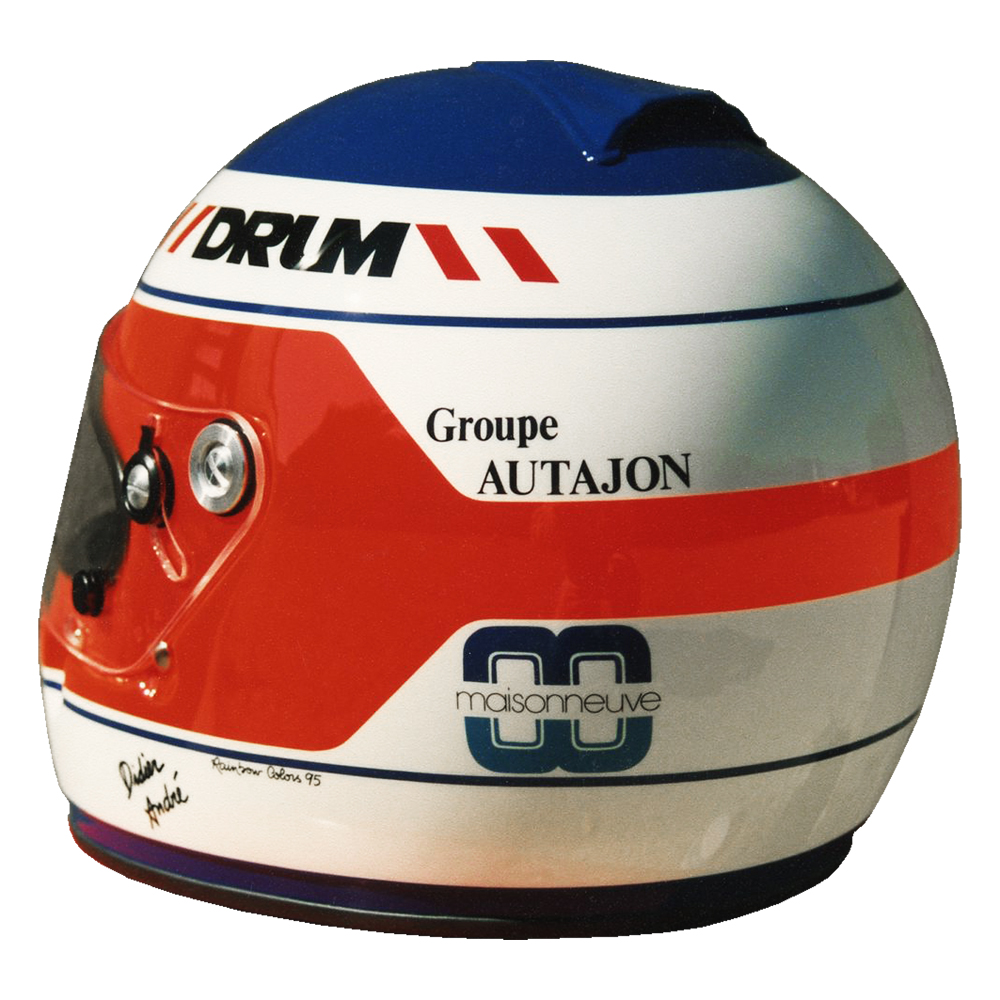 Circuit 1995 Didier ANDRÉ Casque Arai GP 3, peint par Christian Roux / Rainbow Colors en 1995 pour Didier André, Team Elf La Filière Winfield, Championnat de France de Formule 3. Précédent Suivant