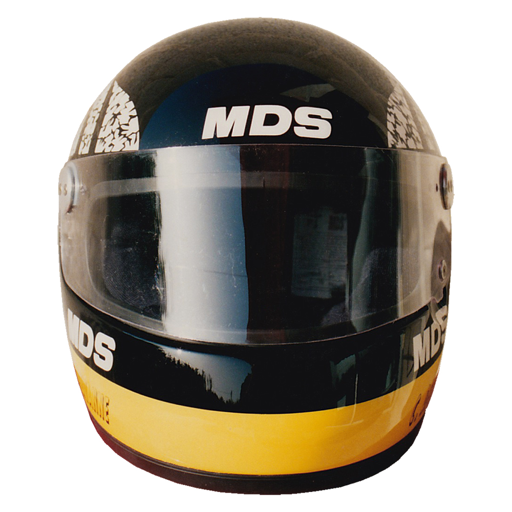 Circuit 1992 Christophe DECHAVANNE Casque MDS F1, crée et peint par Christian Roux / Rainbow Colors, d'après le générique de l'emission “Ciel mon Mardi“, pour Christophe Dechavanne, Mirabeau Compétition, Championnat de France Touring Car. Précédent Suivant