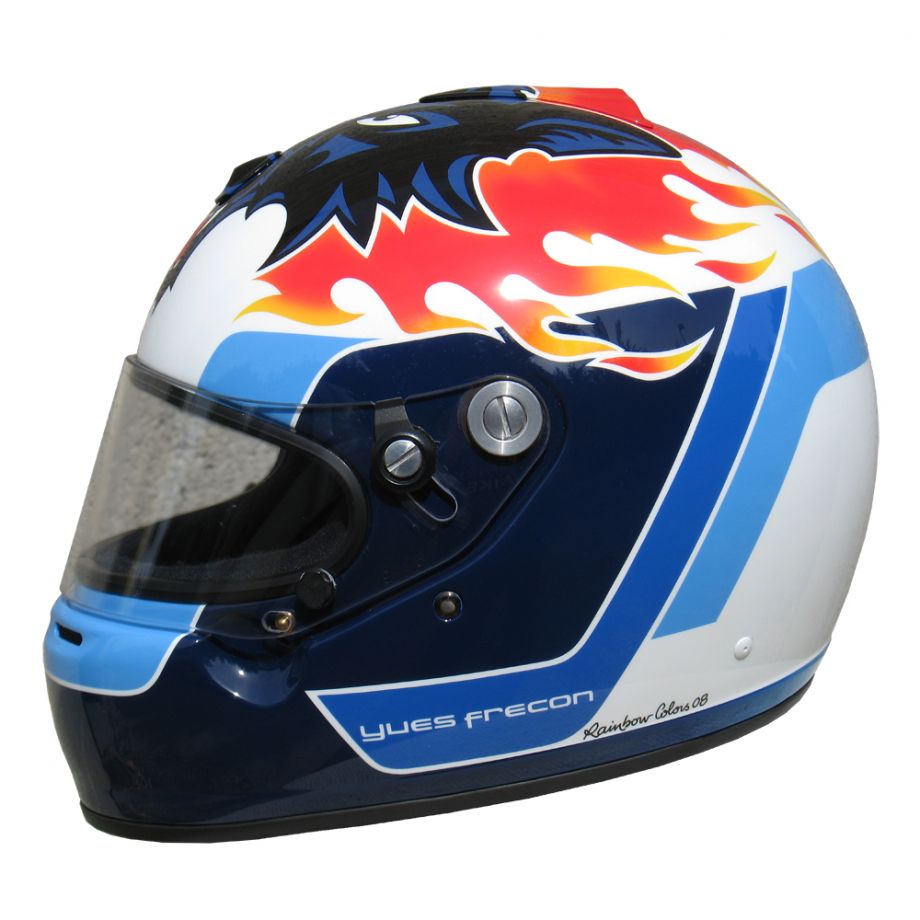 Retrouvez les casques des pilotes dans les différentes disciplines de sport automobile sur circuit peints par Christian Roux au travers des nombreuses saisons depuis les débuts de l'activité de Rainbow Colors en 1979.