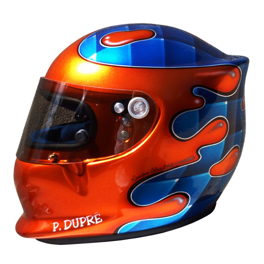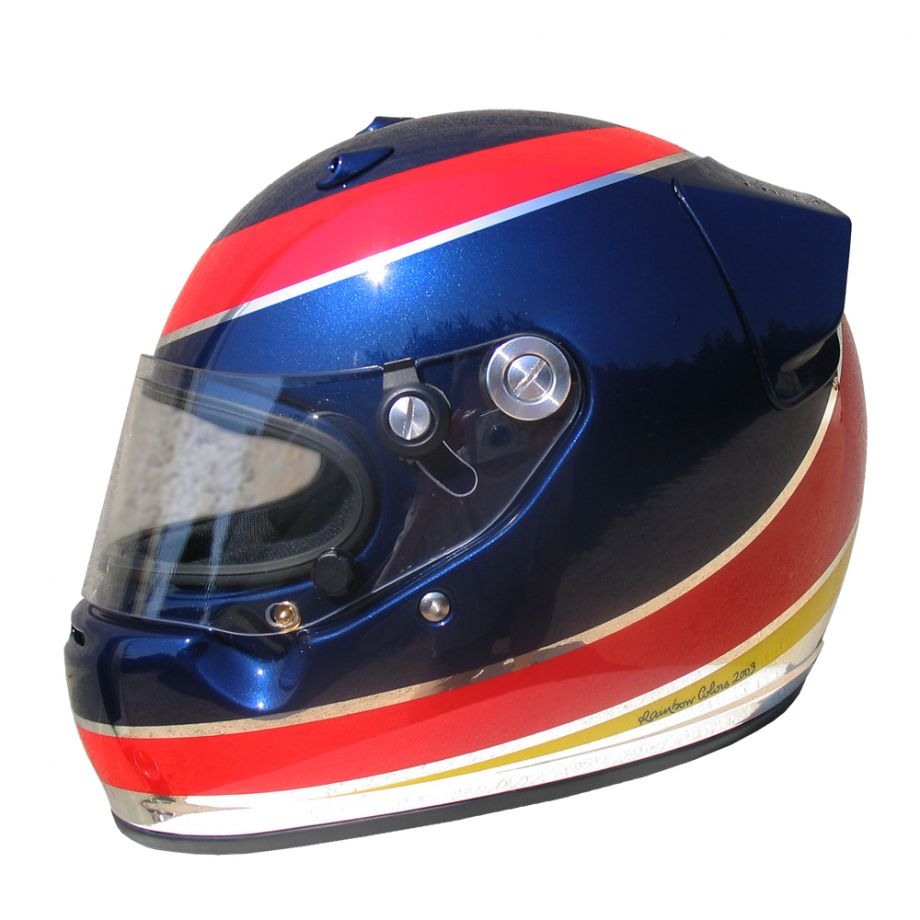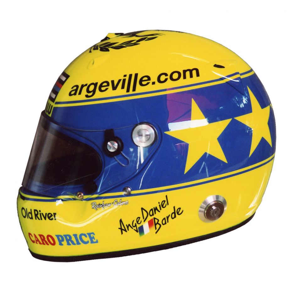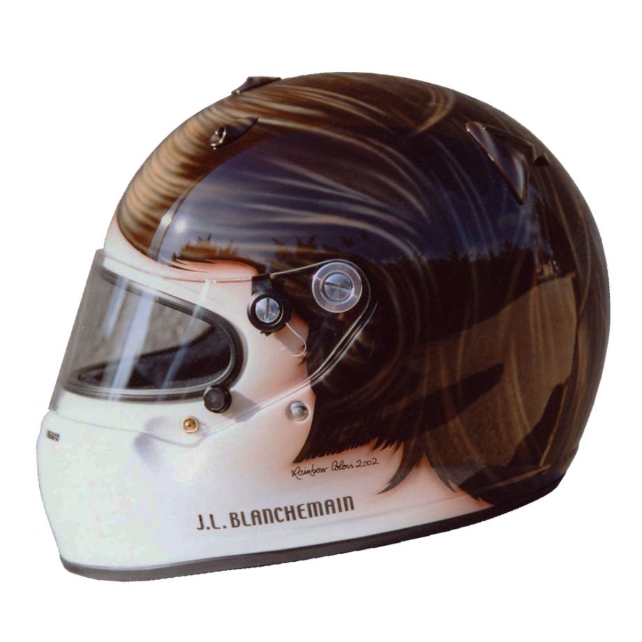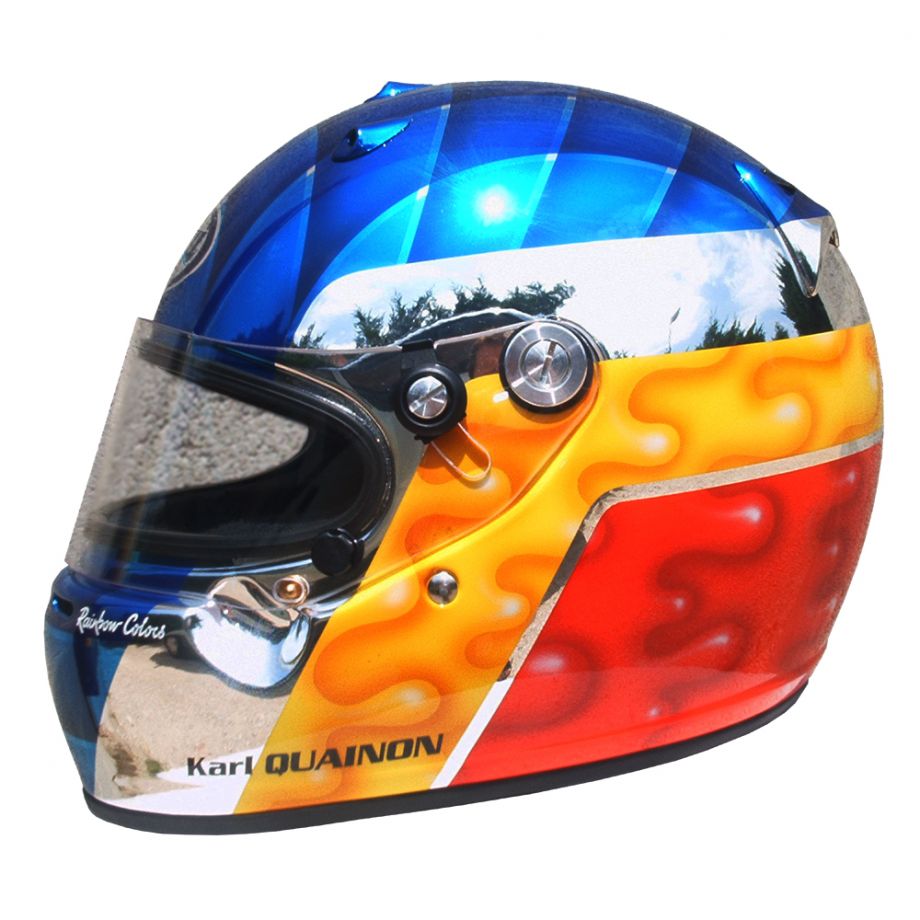 Retrouvez les casques des pilotes dans les différentes disciplines de sport automobile sur circuit peints par Christian Roux au travers des nombreuses saisons depuis les débuts de l'activité de Rainbow Colors en 1979.