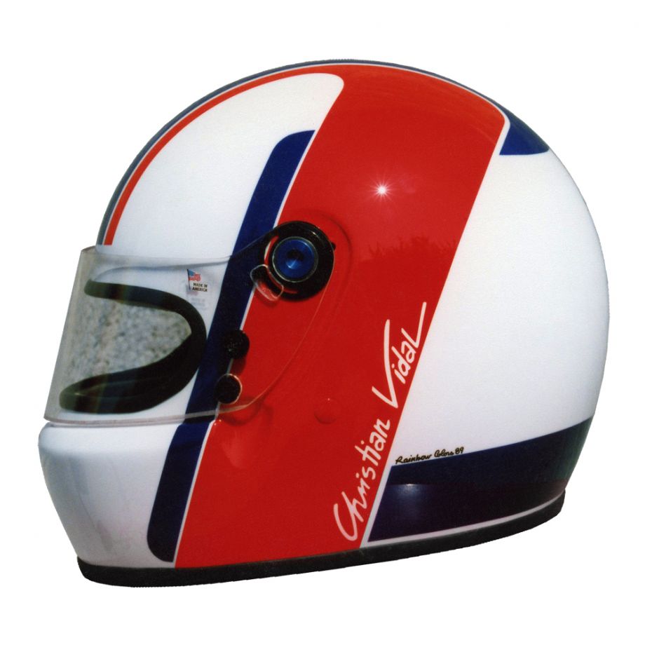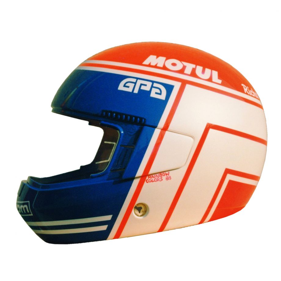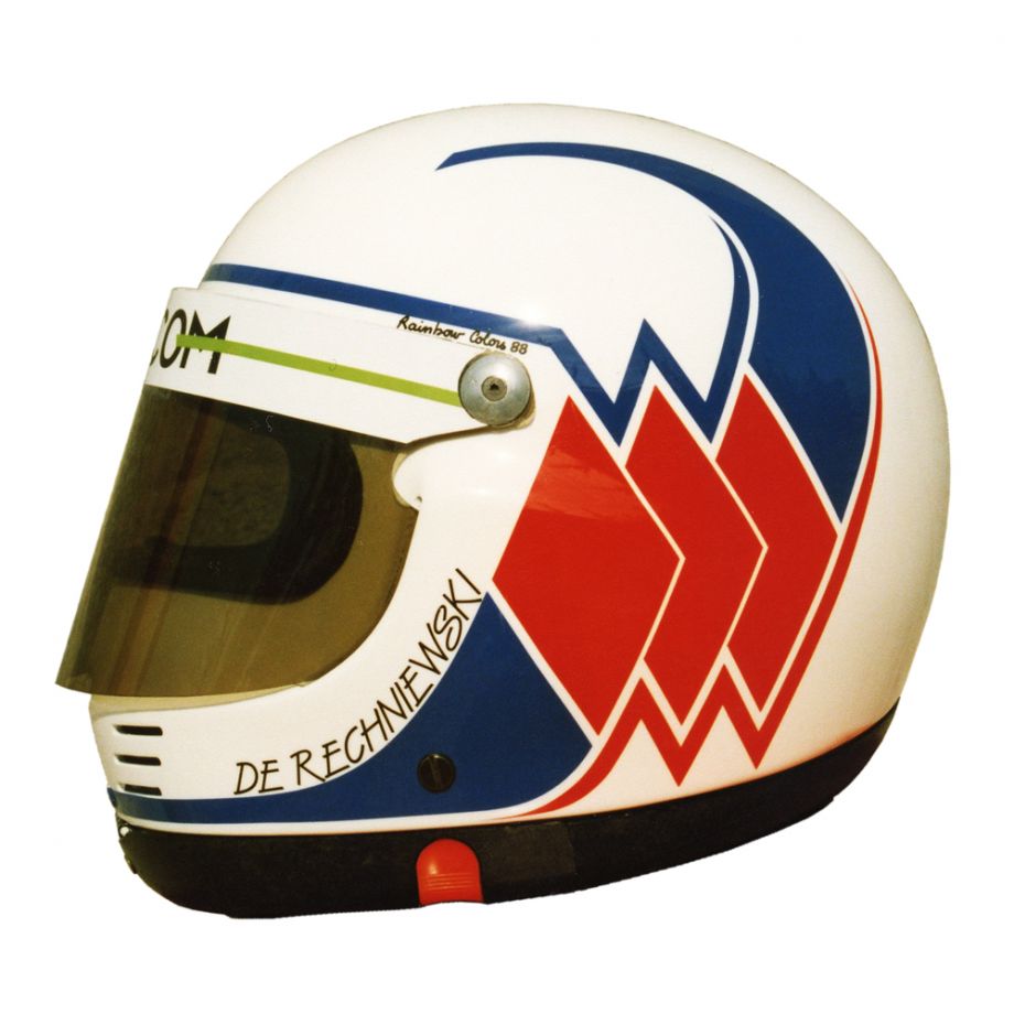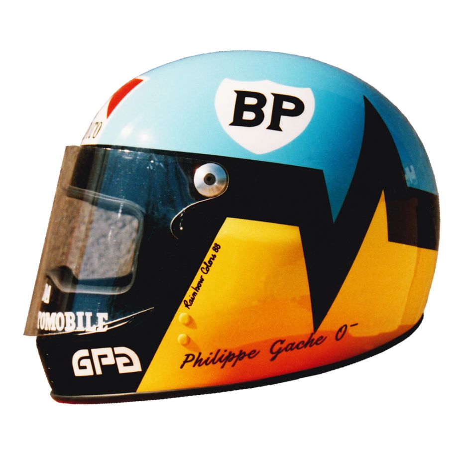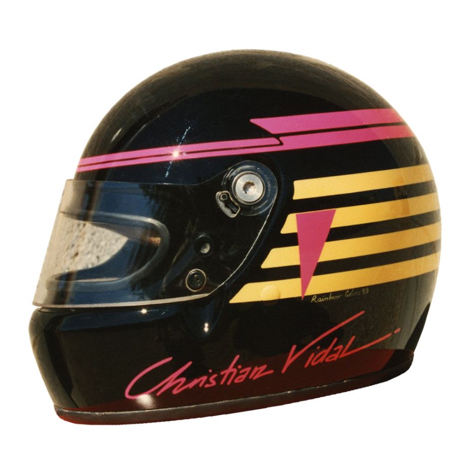 Retrouvez les casques des pilotes dans les différentes disciplines de sport automobile sur circuit peints par Christian Roux au travers des nombreuses saisons depuis les débuts de l'activité de Rainbow Colors en 1979.