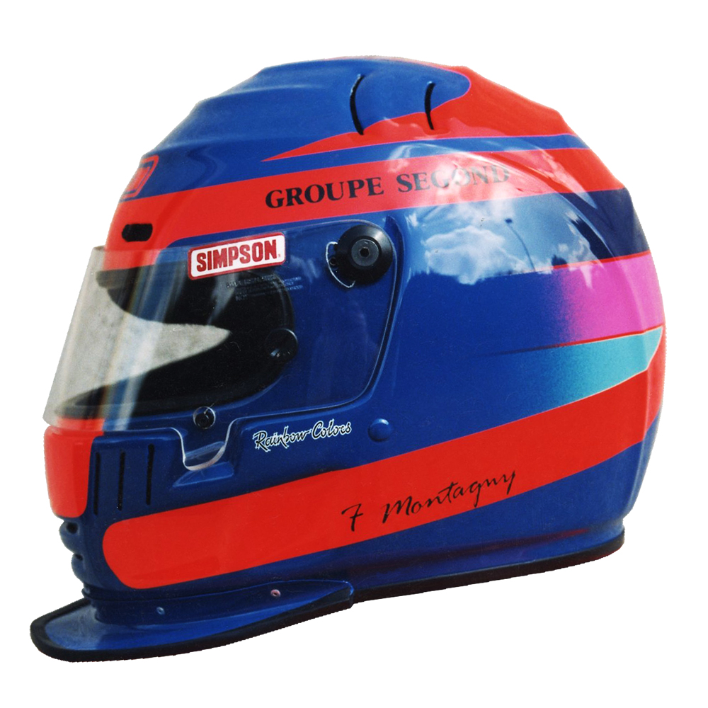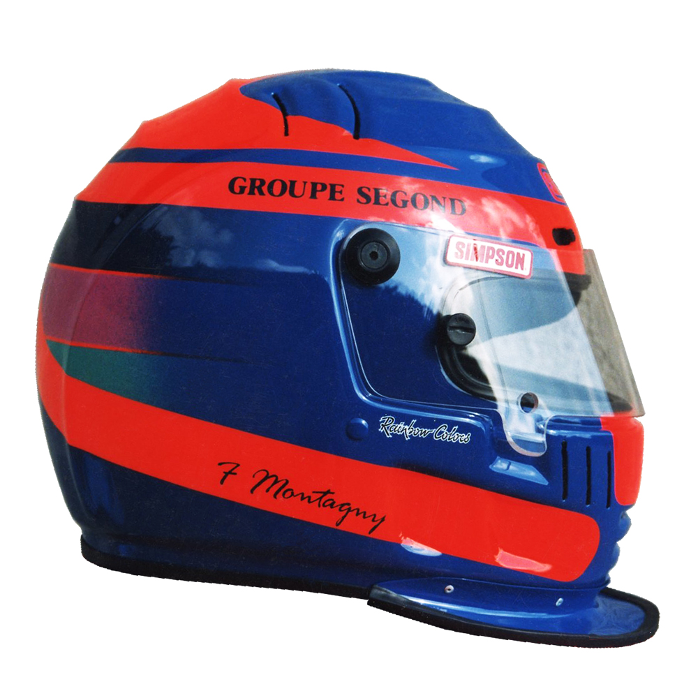 Formule 1 1998 Franck MONTAGNY #1 Casque Simpson Super Shark, peint par Christian Roux / Rainbow Colors en 1998 pour Franck Montagny, La Filière Elf, Vice Champion de France de Formule 3. Précédent Suivant