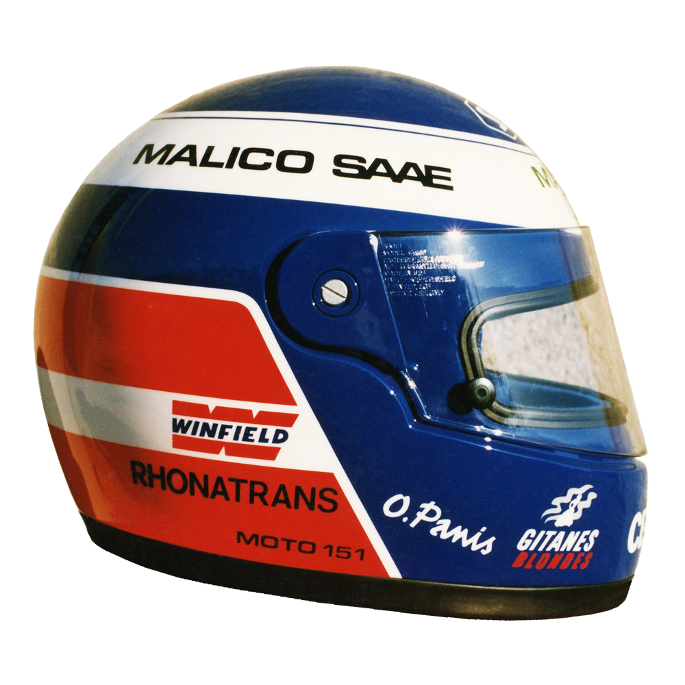 Formule 1 1991 Olivier PANIS #2 Casque Shoei GRV 4, peint par Christian Roux / Rainbow Colors en 1991 pour Olivier Panis, Team la Filière Elf, Vice Champion de France Formule 3. Précédent Suivant