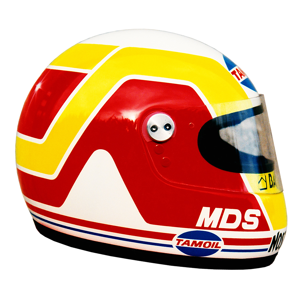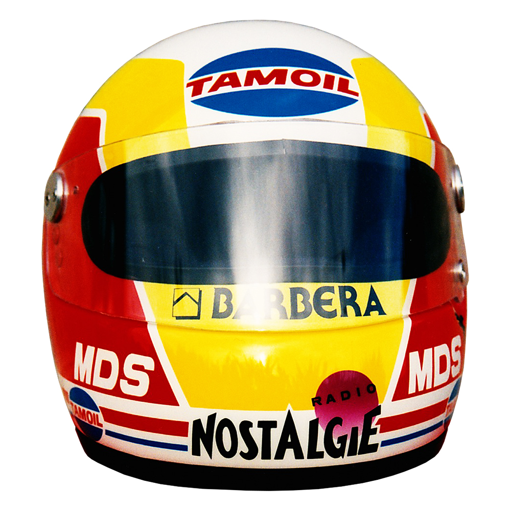 Formule 1 1992 Olivier BERETTA #8 Casque MDS F1, peint par Christian Roux / Rainbow Colors en 1992 pour Olivier Beretta, Team Piquet Racing, Championnat International de Formule 3000. Précédent Suivant