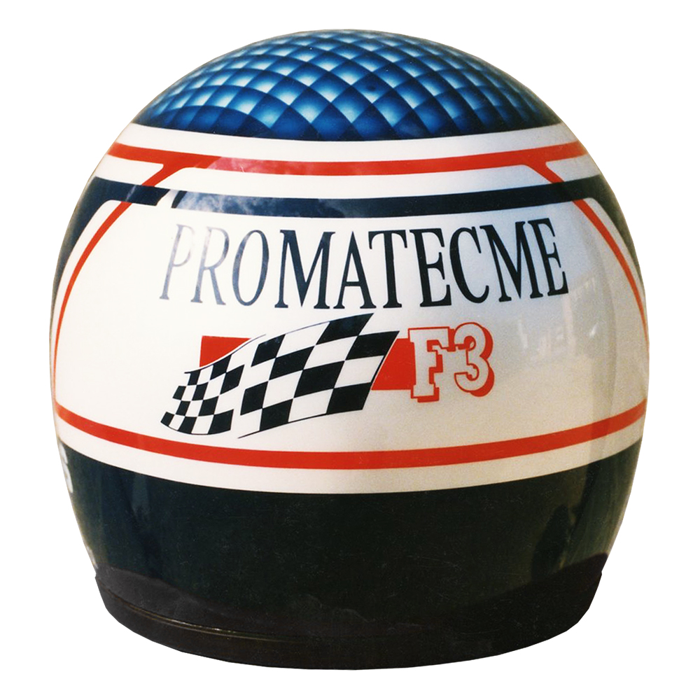 Formule 1 1991 Franck LAGORCE #1 Casque MDS F1, peint par Christizn Roux / Rainbow Colors en 1991 pour Franck Lagorce, Écurie Promatecme, 4ème du Championnat de France de Formule 3. Précédent Suivant