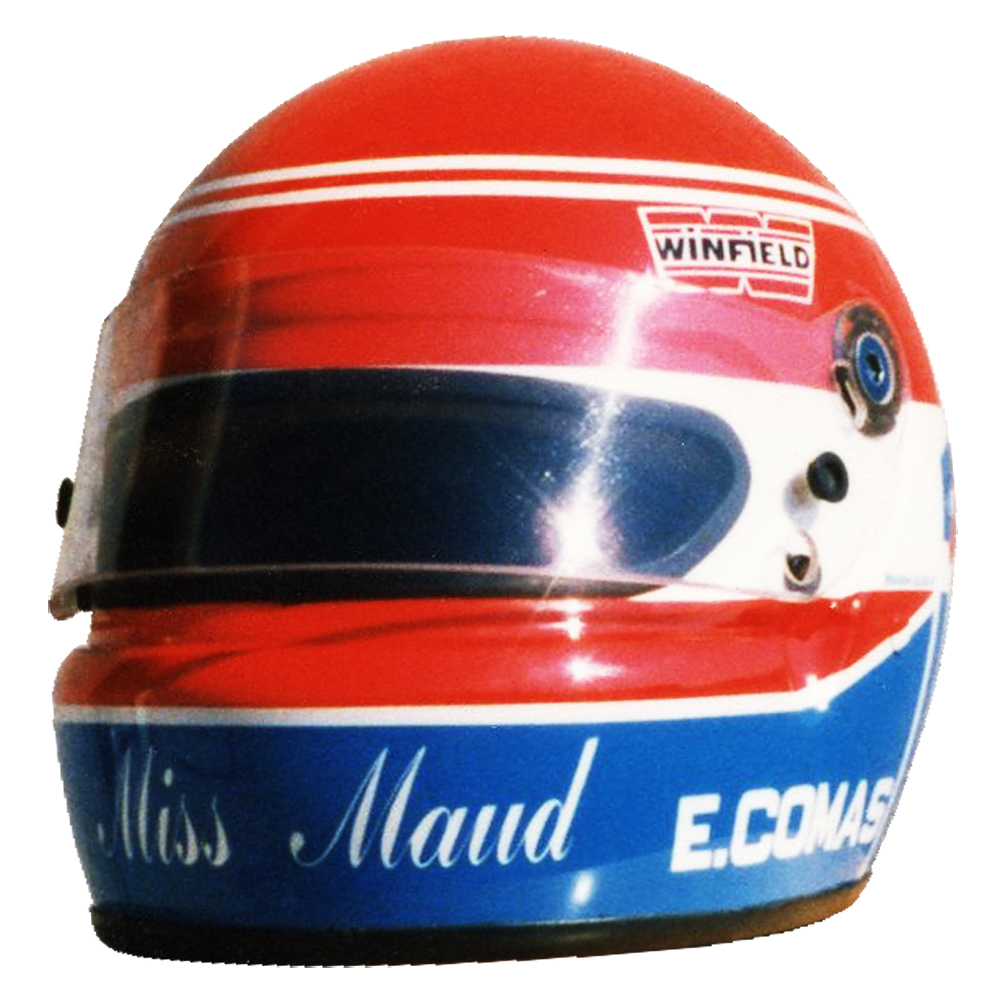 Formule 1 1987 Erik COMAS #2 Casque Bell XFM-1, peint par Christian Roux / Rainbow Colors en 1987 pour Erik Comas, Ecurie Elf, Championnat de France de Formule 3 et Team Sonica, champion de France Superproduction. Précédent Suivant