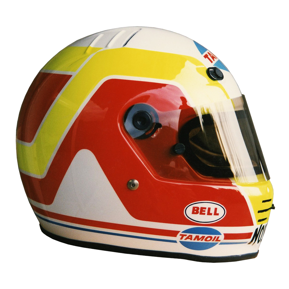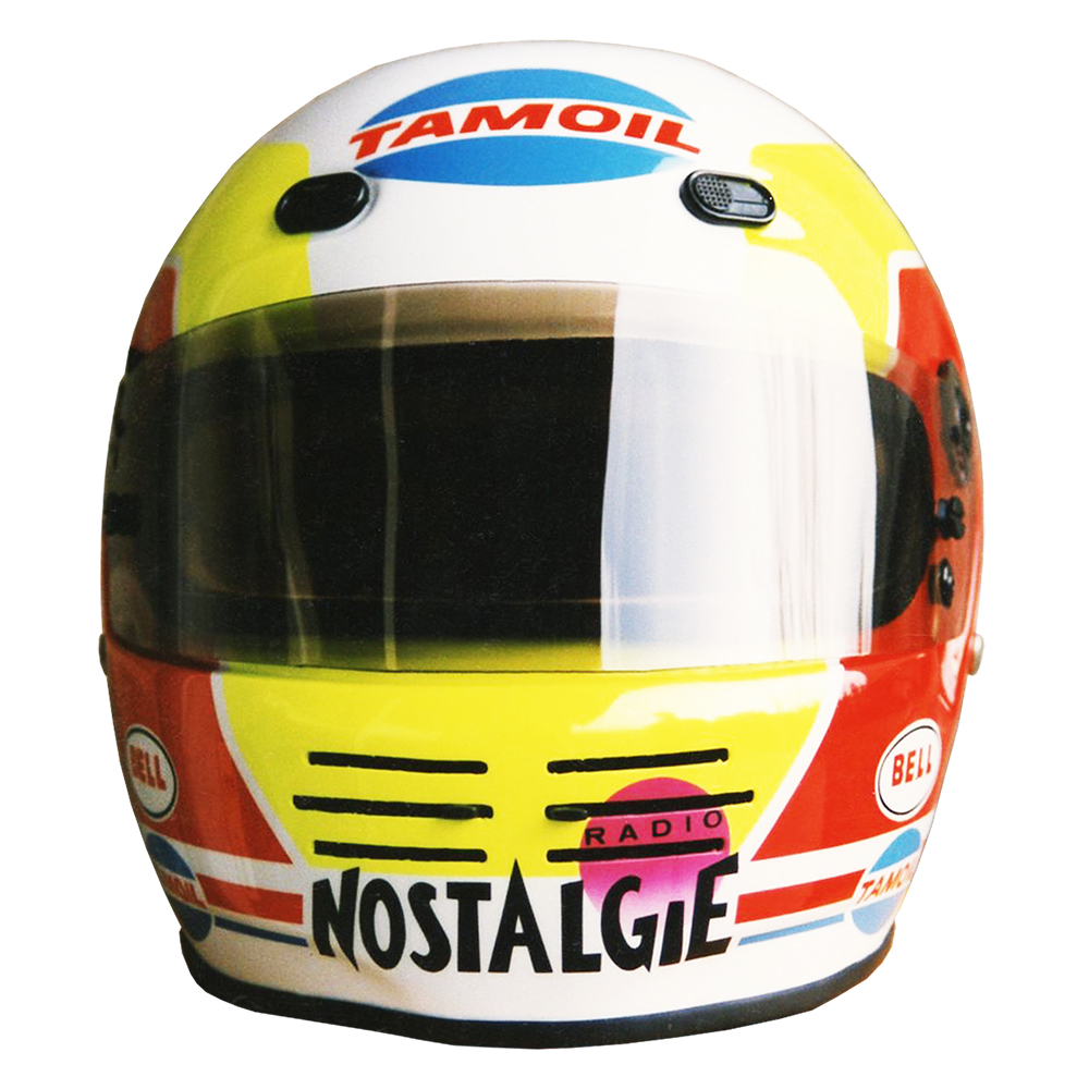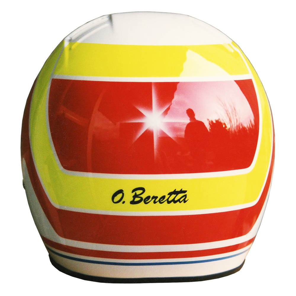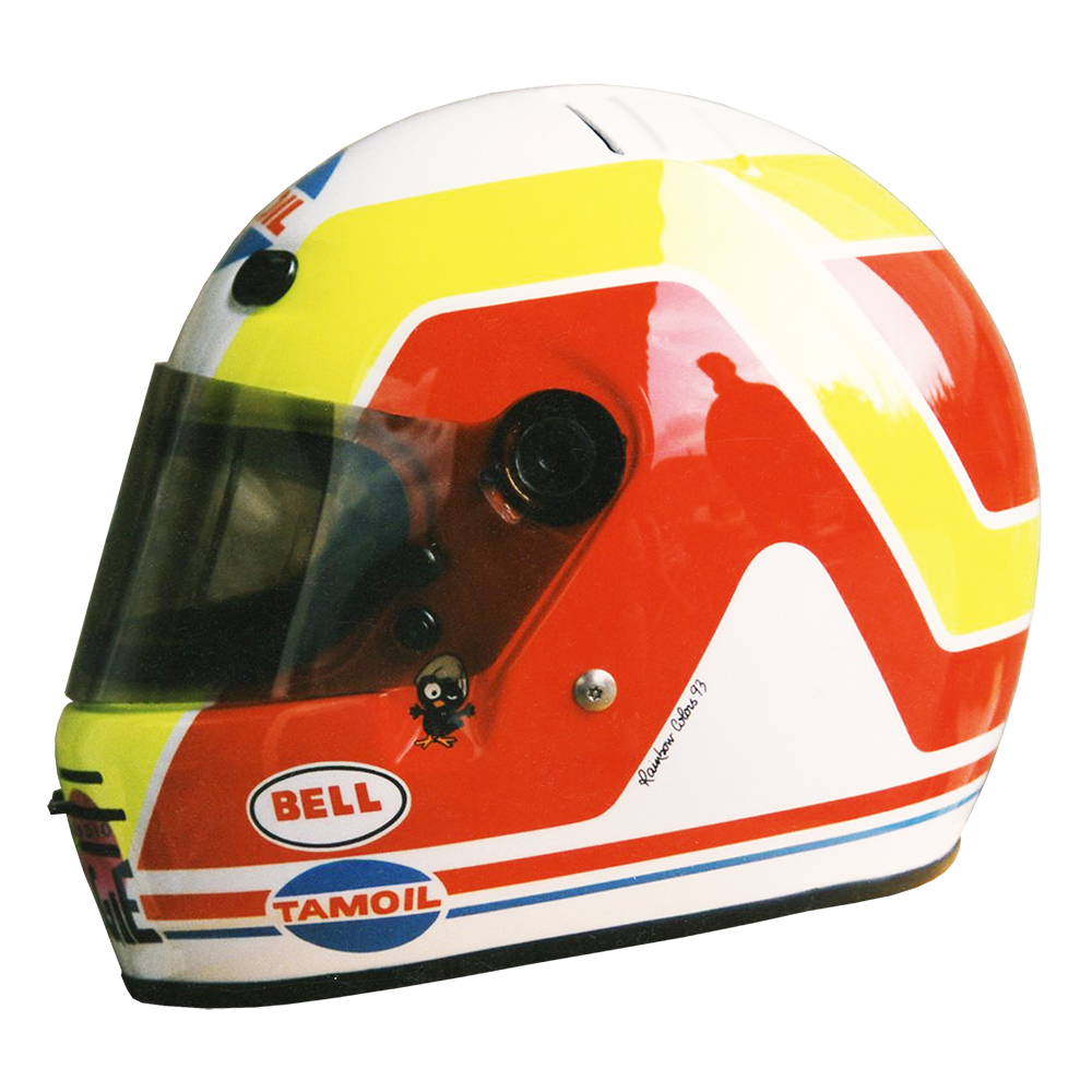 Formule 1 1993 Olivier BERETTA #1 Casque Bell M 3, peint par Christian Roux / Rainbow Colors en 1993 pour Olivier Beretta, Team Forti Corse, Championnat International de Formule 3000. Précédent Suivant