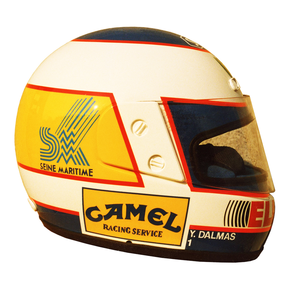 Formule 1 1988 Yannick DALMAS #5 Casque Shoei ZRF-Z, peint par Christian Roux / Rainbow Colors en 1988 pour Yannick Dalmas, Team Larrousse et Calmels F1, Championnat du Monde de Formule 1. Précédent Suivant