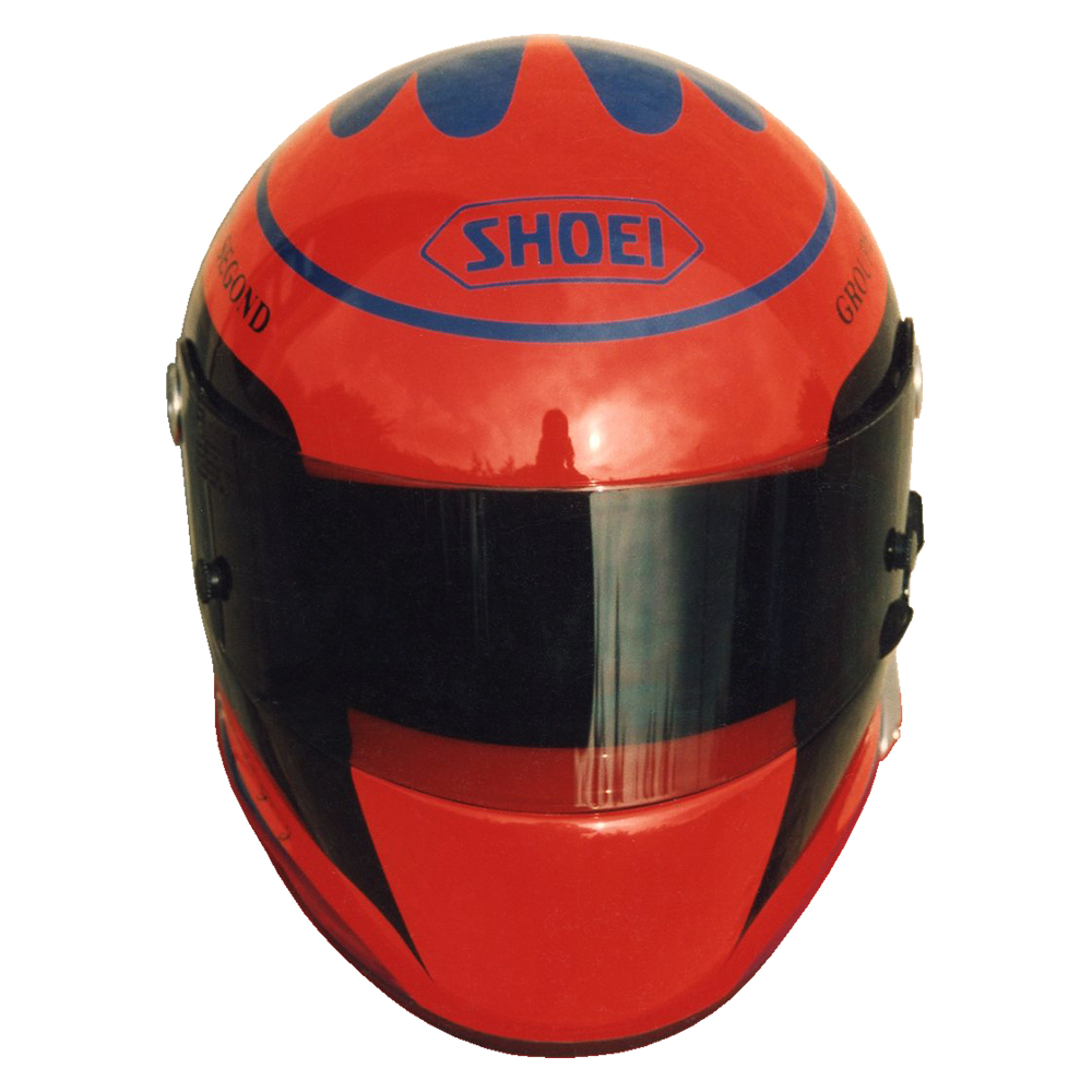 Formule 1 1996 Franck MONTAGNY Casque Shoei X 4, peint par Christian Roux / Rainbow Colors en 1996 pour Franck Montagny, Team Elf La Filière, Championnat de France de Formule 3. Précédent Suivant