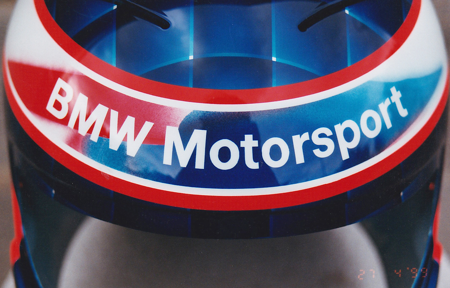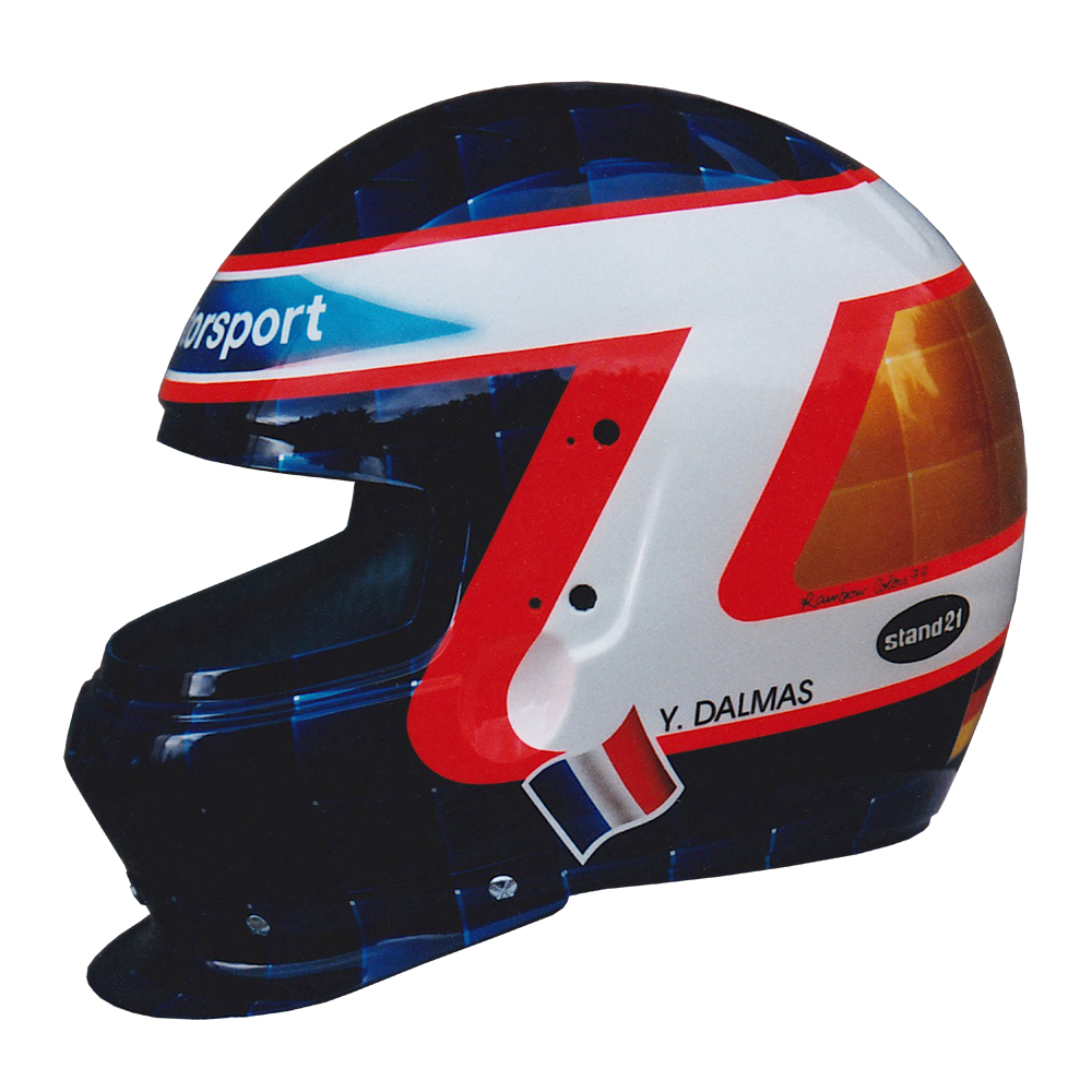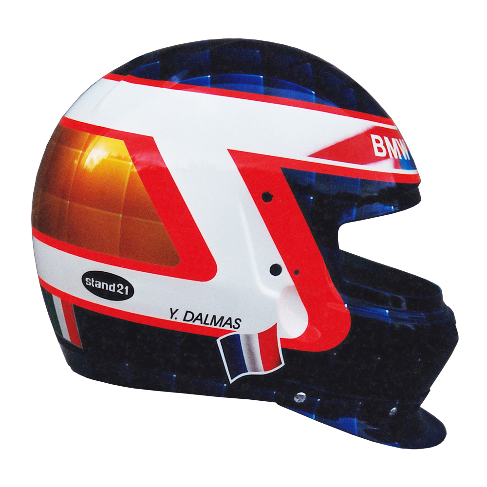 Formule 1 1999 Yannick DALMAS Casque Stand 21 F 21, peint par Christian Roux / Rainbow Colors en 1999 pour Yannick Dalmas, Team BMW Motorsport, Vainqueur des 67ème 24 Heures du Mans. Précédent Suivant