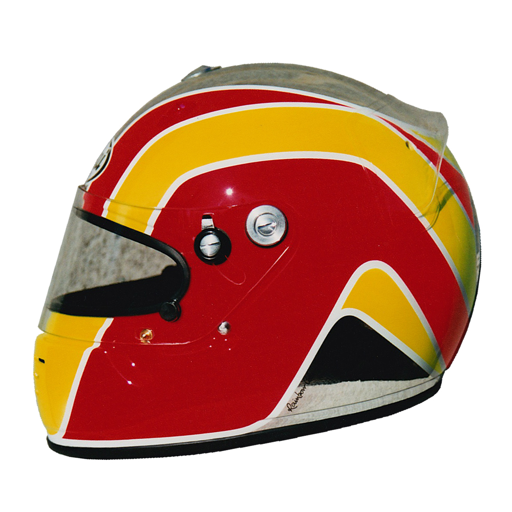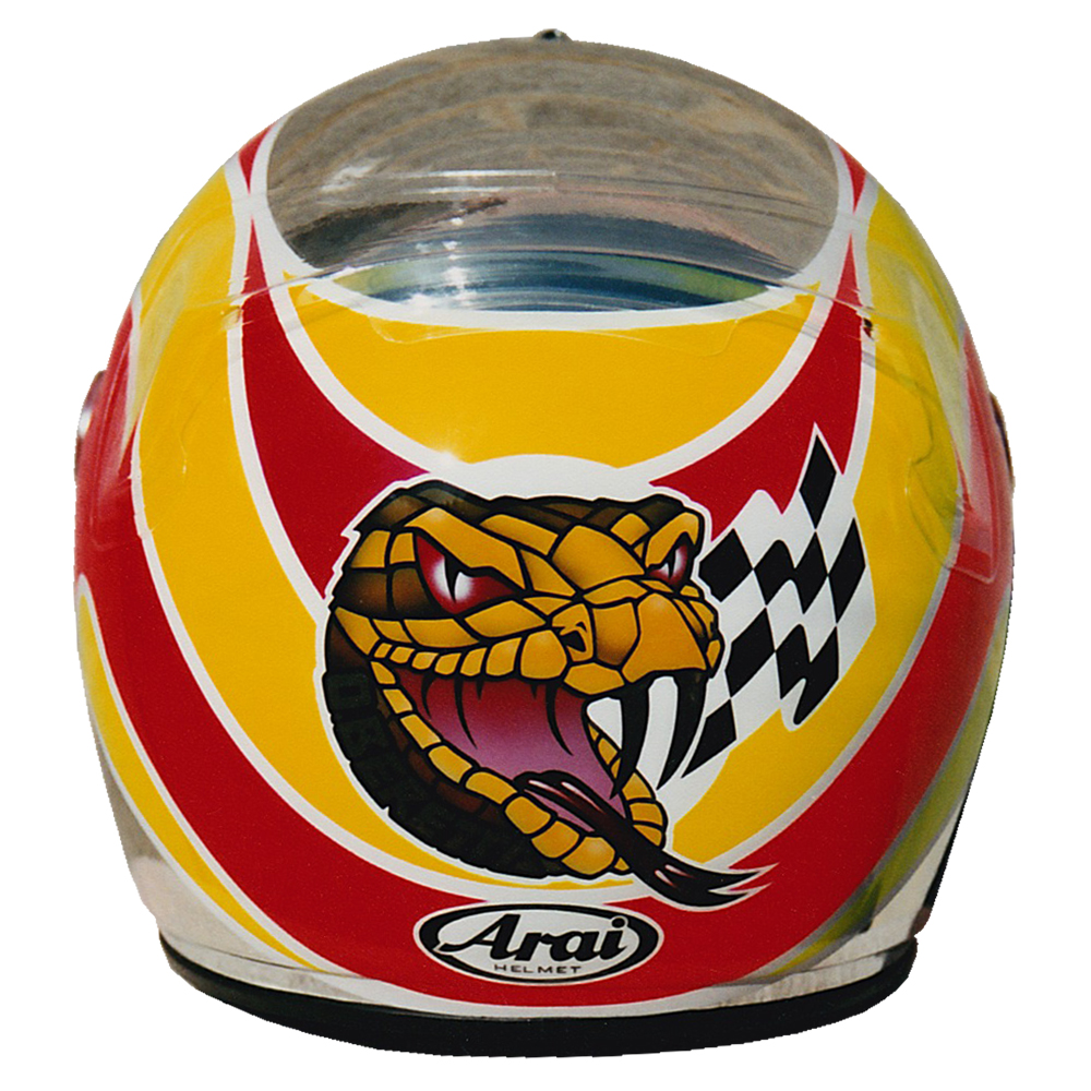 Formule 1 2000 Olivier BERETTA Casque Arai GP 4, peint par Christian Roux / Rainbow Colors en 2000 pour Olivier Beretta, Dodge Viper Team Oreca, Vainqueur, des 24 Heures du Mans GTS, des 24 Heures de Daytona GTO, des America Le Mans Series GTS. Précédent Suivant