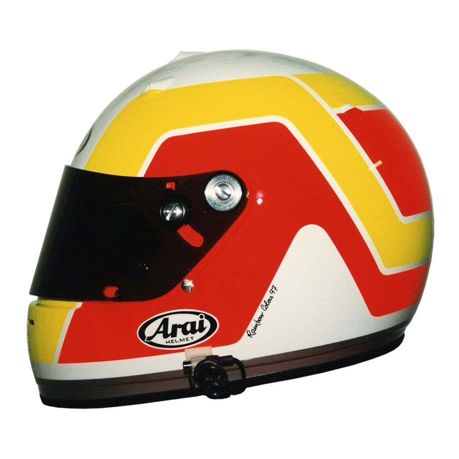 Retrouvez les casques des pilotes de sport automobile ayant participé aux Grands Prix de Formule 1 peints par Christian Roux / Rainbow Colors, au travers de nombreuses saisons et de leurs différentes disciplines, de René Arnoux à Charles Pic.