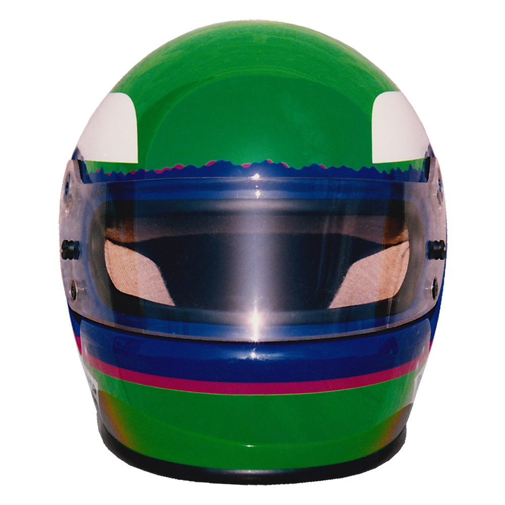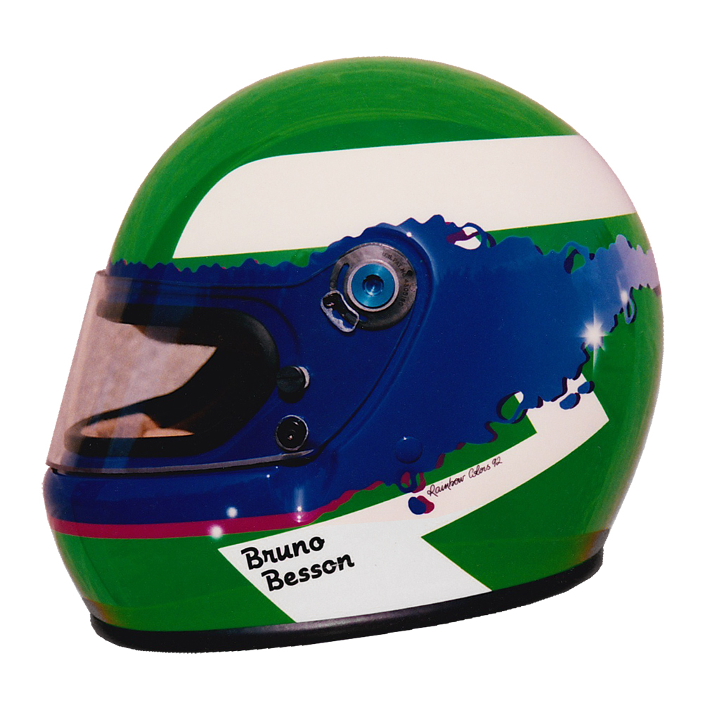 Karting 1992 Bruno BESSON Casque Bell XFM-1, crée et peint par Christian Roux / Rainbow Colors en 1992 pour Bruno Besson. Précédent Suivant