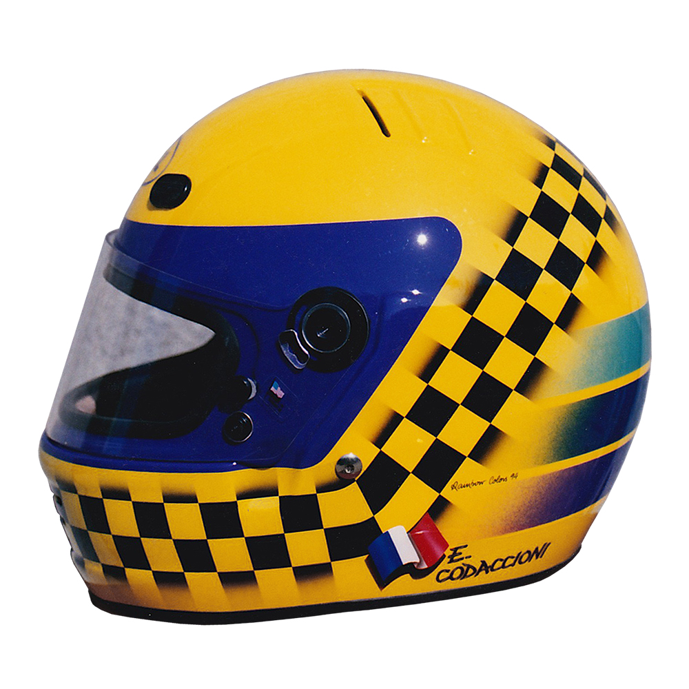 Karting 1994 Eric CODACCIONI Casque Bell Sport 2, crée et peint par Christian Roux / Rainbow Colors en 1994 pour Eric Codaccioni. Précédent Suivant