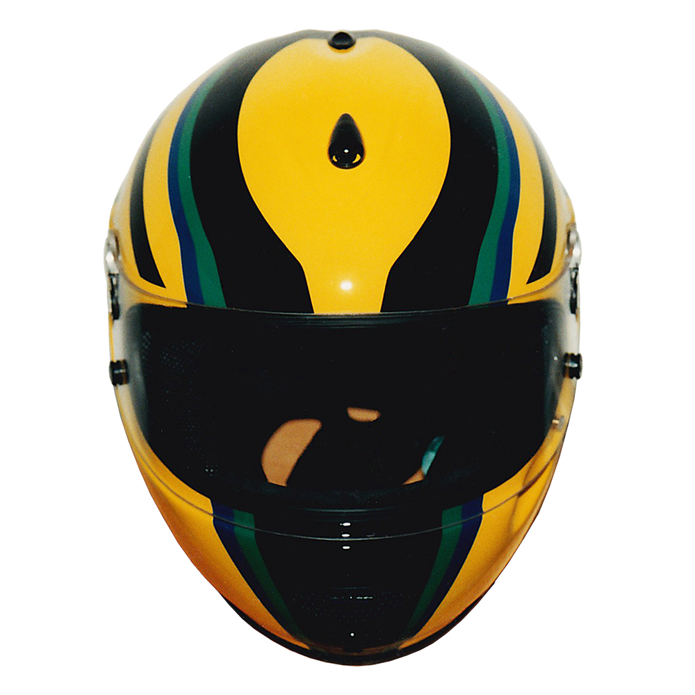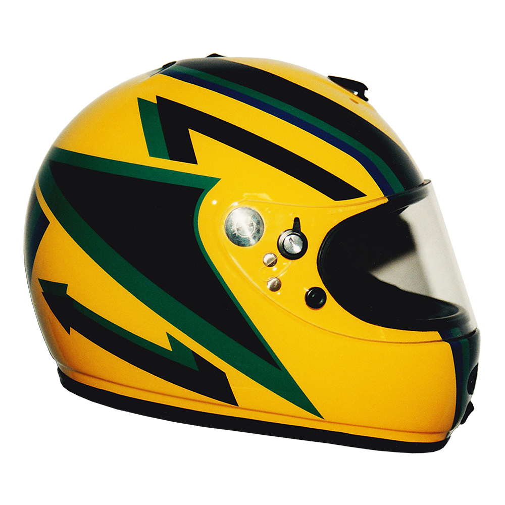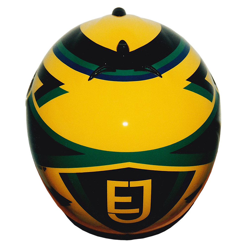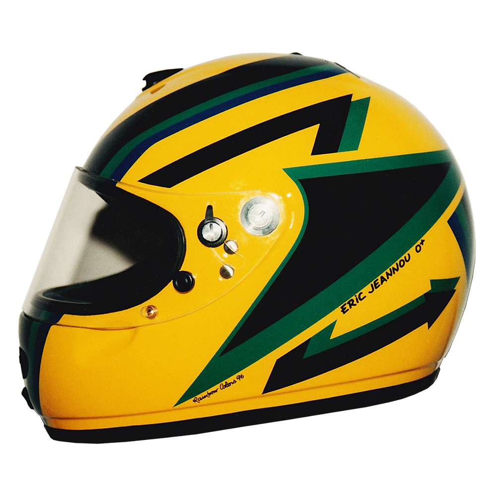 Karting 1996 Eric JEANNOU Casque Shark RS, peint par Christian Roux / Rainbow Colors en 1996 pour Eric Jeannou. Précédent Suivant