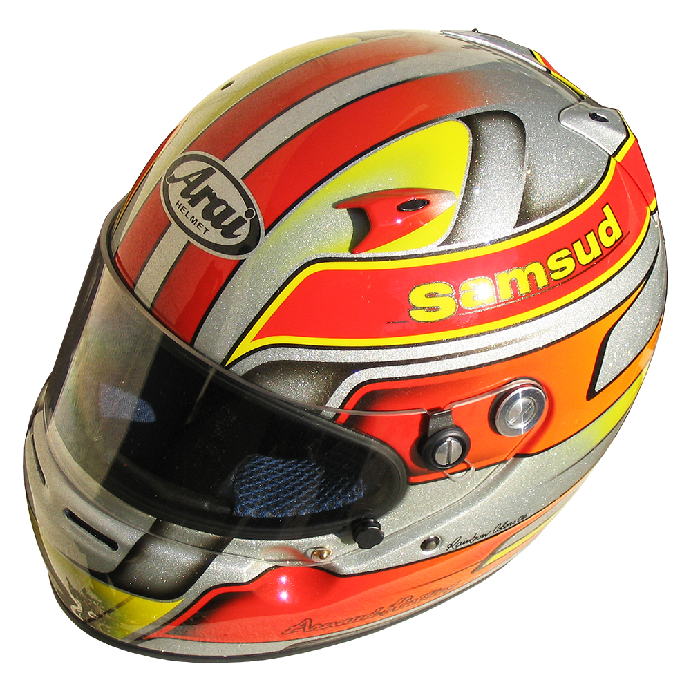 Karting 2006 Arnaud HUTTING Casque Arai SK 5, crée et peint par Christian Roux / Rainbow Colors en 2006 pour Arnaud Hutting. Précédent Suivant