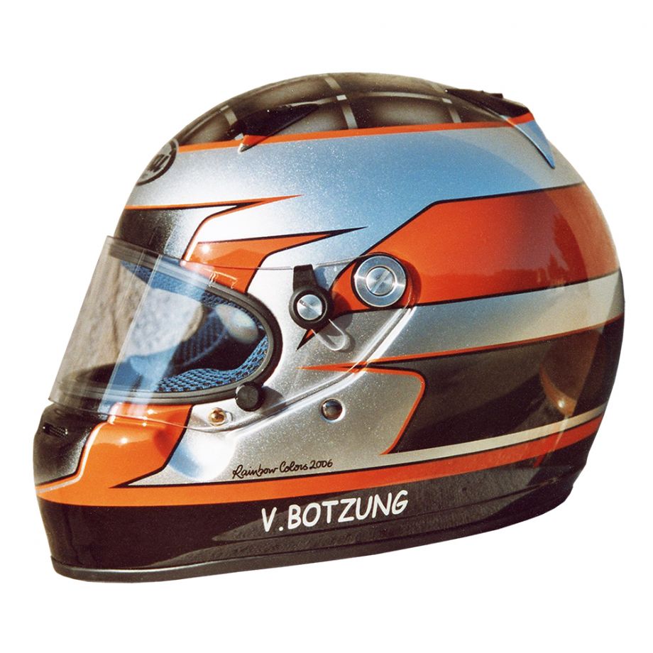 Retrouvez les casques des pilotes de karting dans leurs différentes catégories peints par Christian Roux au travers des nombreuses saisons depuis les débuts de l'activité de Rainbow Colors en 1979.