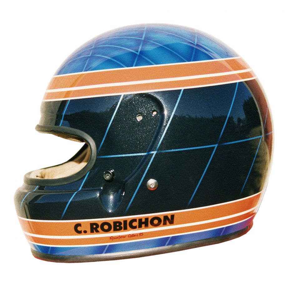 Retrouvez les casques des pilotes de karting dans leurs différentes catégories peints par Christian Roux au travers des nombreuses saisons depuis les débuts de l'activité de Rainbow Colors en 1979.