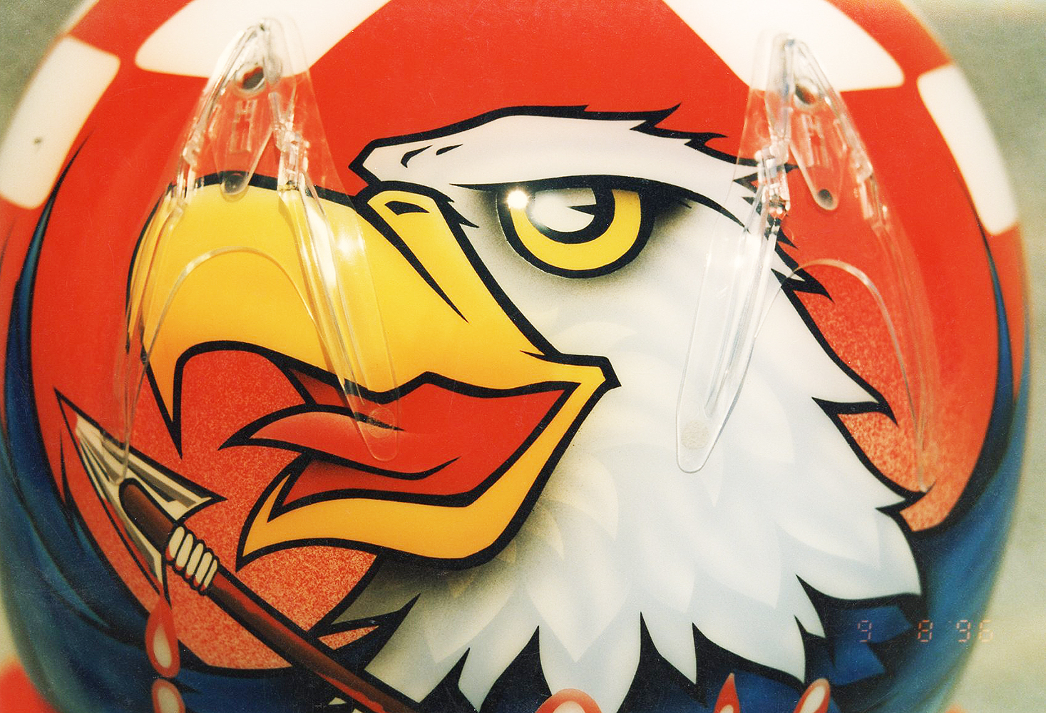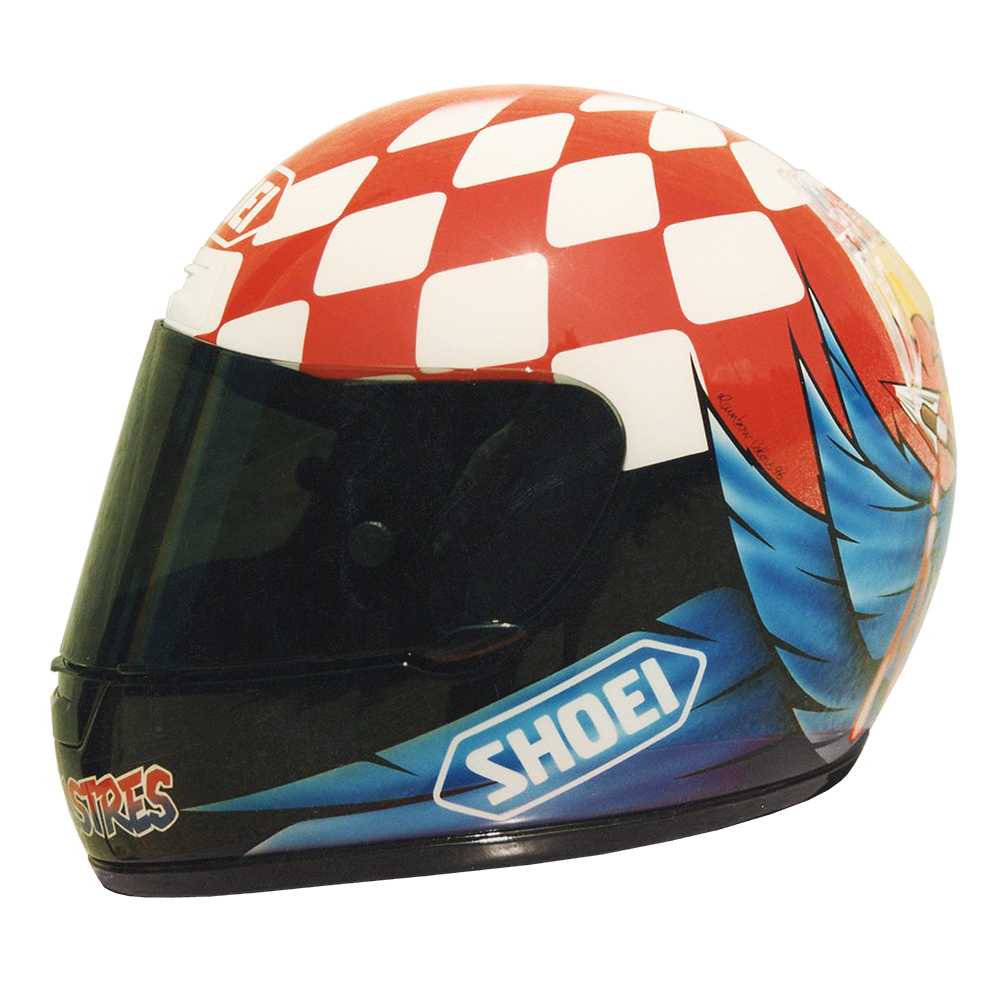 Circuit 1996 Michel AMALRIC #2 Casque Shoei X8 R, crée et peint par Christian Roux / Rainbow Colors en 1995 pour Michel Amalric, Honda, Championnat du Monde d'Endurance. Précédent Suivant
