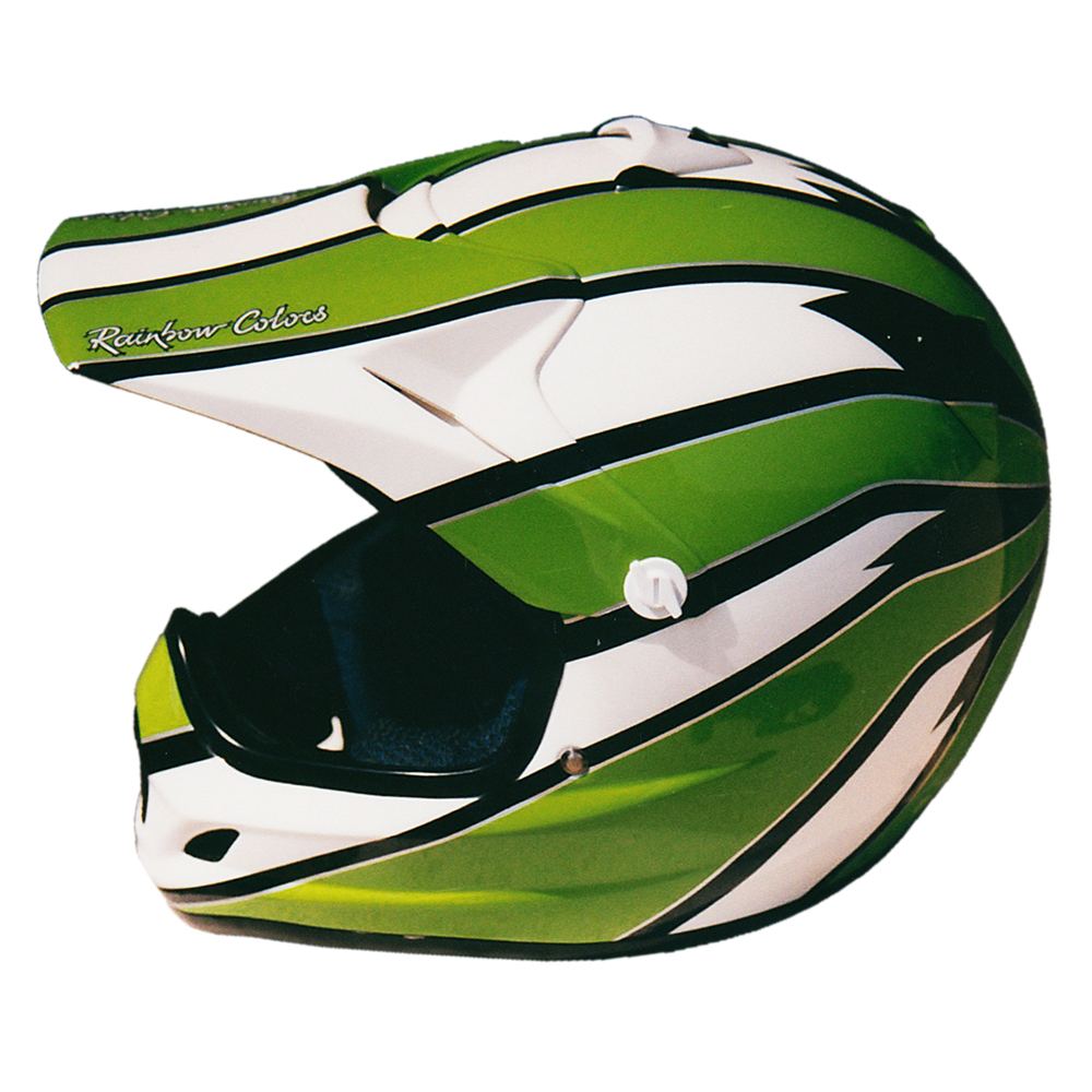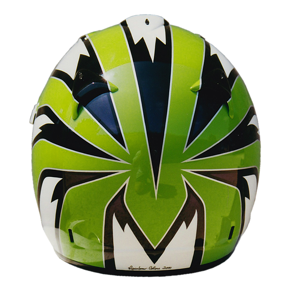 Tout Terrain 2000 Jacques BEGHIN Casque Arai VX-2, crée et peint par Christian Roux / Rainbow Colors en 2000 pour Jacques Beghin, Look Motard Kawasaki Fos sur Mer. Précédent Suivant