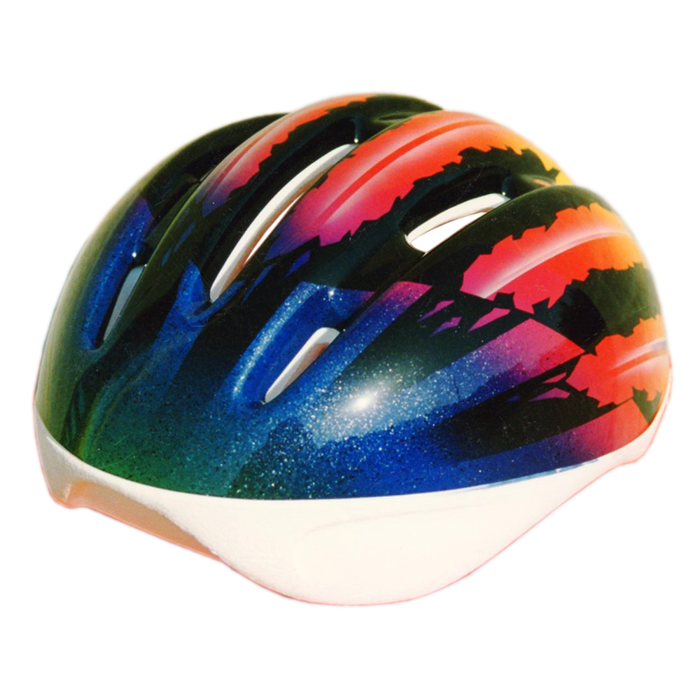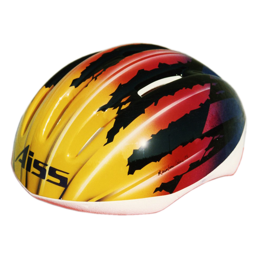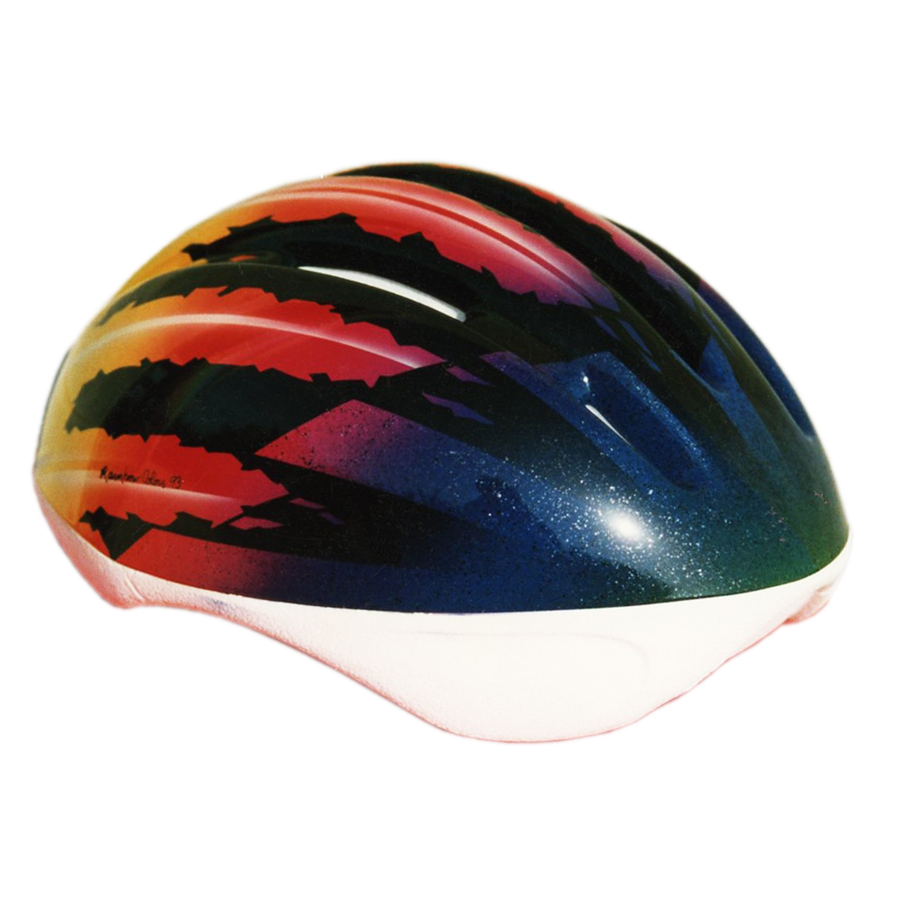 Prototype Série 1993 AISS “Plumes“ Casque AISS VTT, crée et peint par Christian Roux / Rainbow Colors en 1993, projet pour la marque Aiss. Précédent Suivant