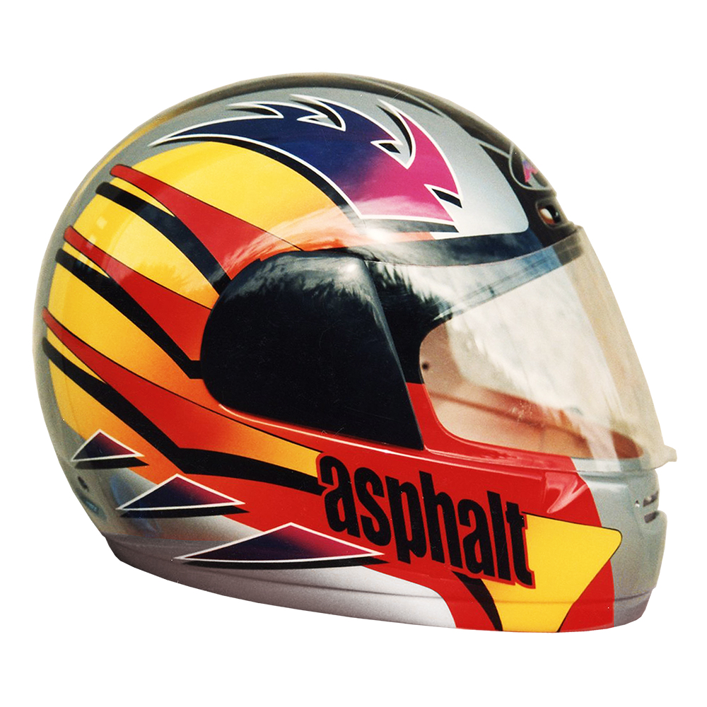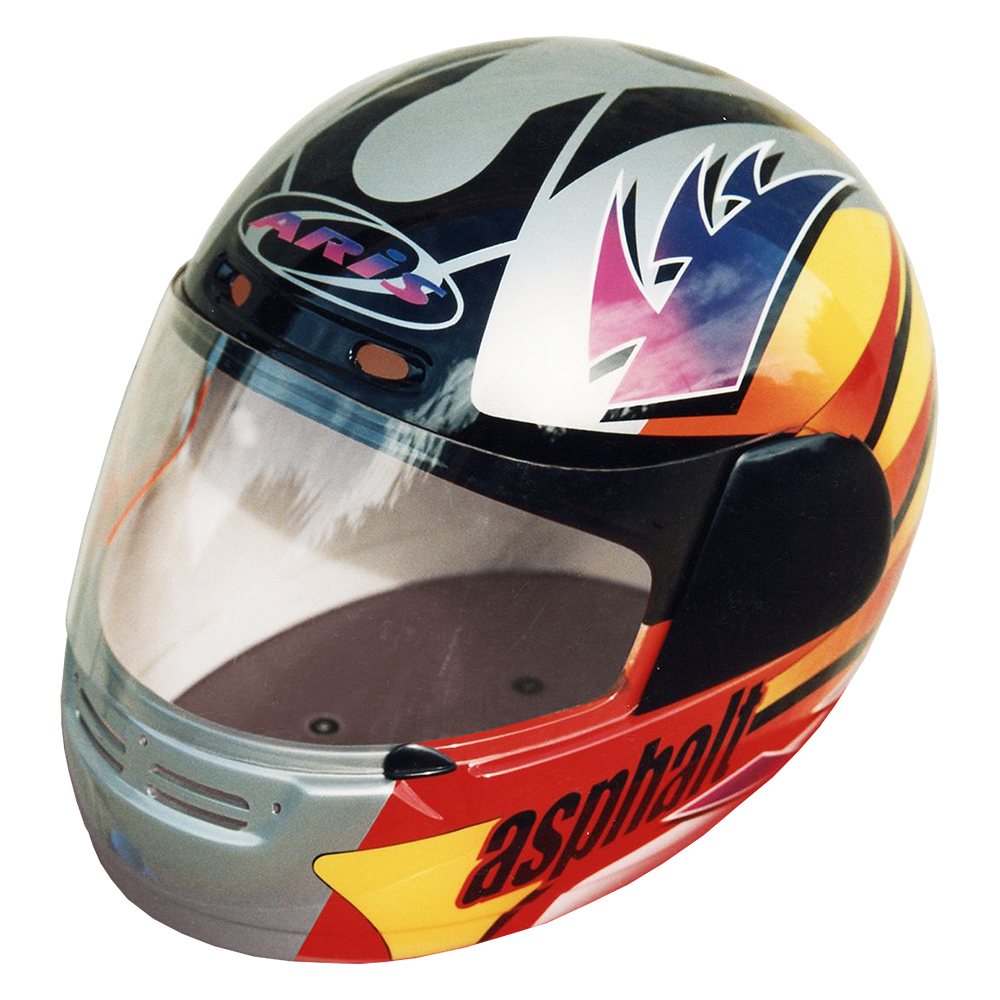 Prototype Série 1995 ARIS Asphalt Jaune Gris Casque Aris Asphalt, peint par Christian Roux / Rainbow Colors en 1995 pour la marque Aris. Précédent Suivant