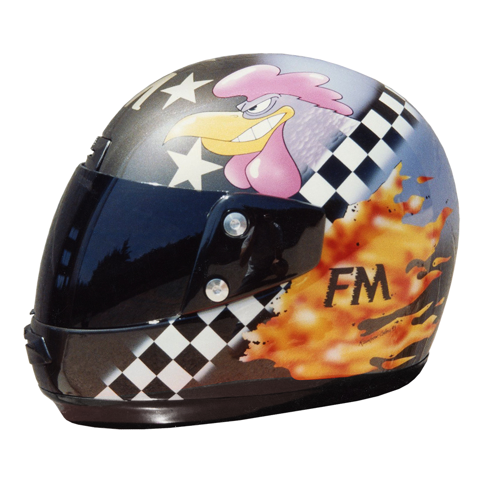 Prototype Série 1993 FM MAHÉ Brun Casque FM Force One, peint par Christian Roux / Rainbow Colors en 1993 pour la marque FM, réplique commercialisée du casque d'Eric Mahé, design Christian Debarre BAR 2. Précédent Suivant