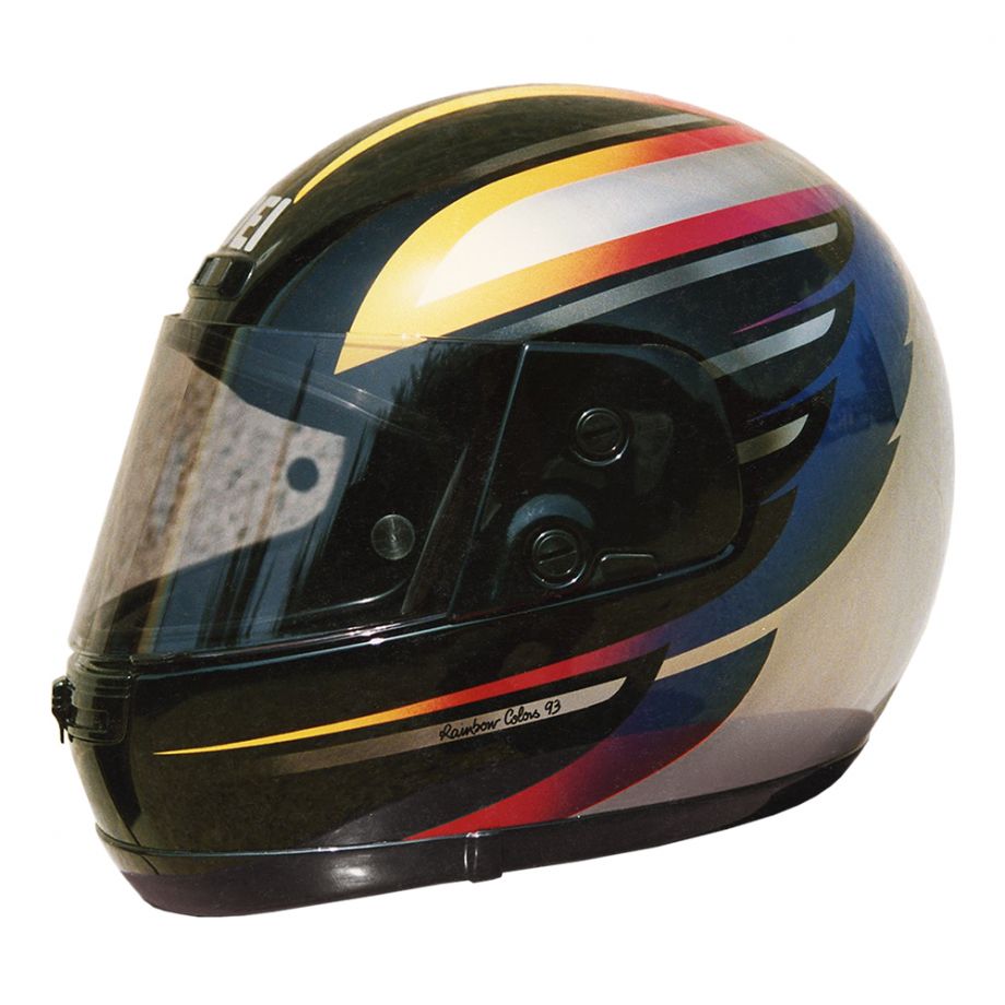 Casque Aiss, peint par Christian Roux / Rainbow Colors en 1994 pour la marque Aiss, d'après un dessin de Christian Bar2 Debarre.