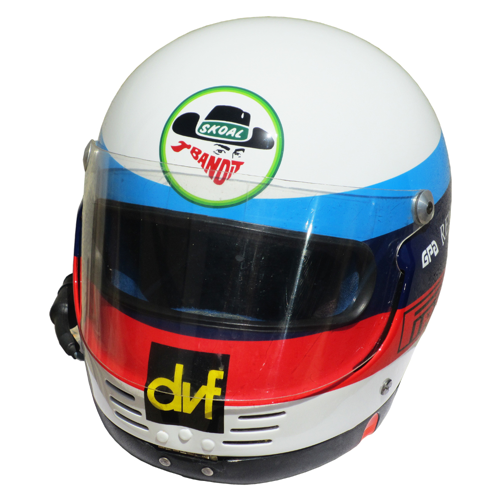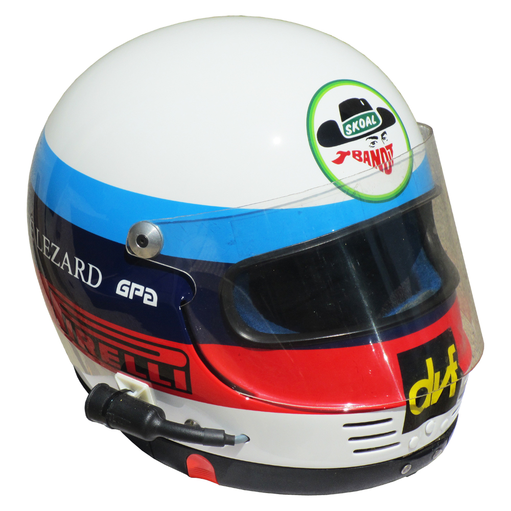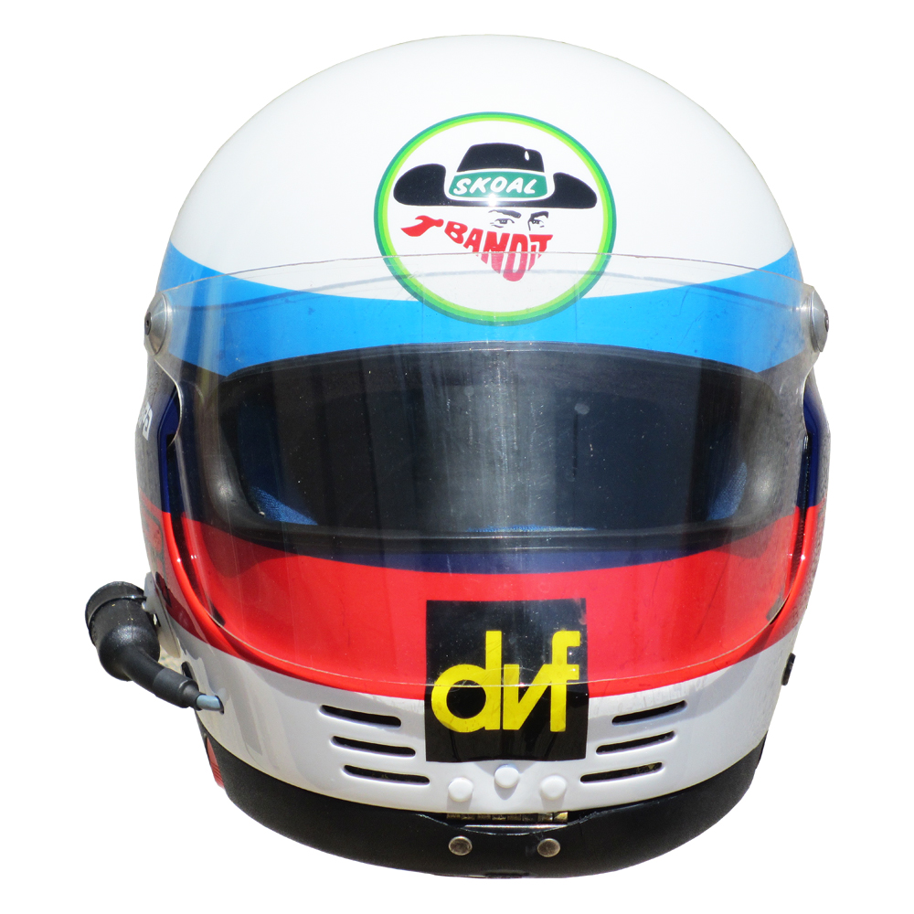 Circuit 2018 Manfred WINKELHOCK Réplica Casque GPA SJ, peint par Christian Roux / Rainbow Colors en 2018, réplique du casque de Manfred Winkelhock, saison F1 1985, Skoal Bandit Team Ram Racing. Précédent Suivant